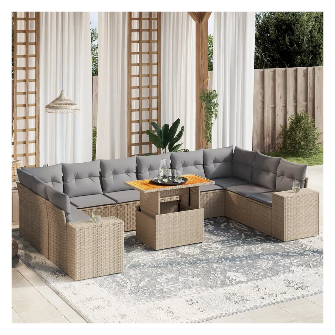 Cet ensemble de canapés de jardin est le complément parfait de votre arrière-cour, terrasse ou patio, offrant un espace confortable et accueillant pour discuter avec la famille et les amis ou simplement se détendre et profiter de l'extérieur. Matériau durable : la résine tressée, également connue sous le nom de poly rotin, est un matériau synthétique solide et nécessitant peu d'entretien qui ressemble au rotin naturel. Il est léger, facile à nettoyer et couramment utilisé pour les meubles d'extérieur en raison de sa durabilité et de ses propriétés de résistance aux intempéries.Dessus de table réglable : le dessus de table peut être soulevé pour rendre la table plus haute, ce qui transforme la table d'extérieur d'une table basse à une table de salle à manger. Elle est parfaite pour recevoir des invités ou prendre des repas à l'extérieur.Expérience d'assise confortable : ce mobilier d'extérieur, doté de coussins épais, offre une expérience d'assise confortable.Housse amovible et lavable : ces coussins de siège sont dotés de housses amovibles pour un lavage et un entretien faciles.Conception modulaire : cet ensemble de meubles d'extérieur a une conception modulaire, ce qui le rend complètement flexible et facile à déplacer, afin que vous puissiez créer un agencement de meubles d'extérieur personnalisé. Bon à savoir :Pour que vos meubles d'extérieur restent beaux, nous vous recommandons de les protéger avec une housse imperméable.