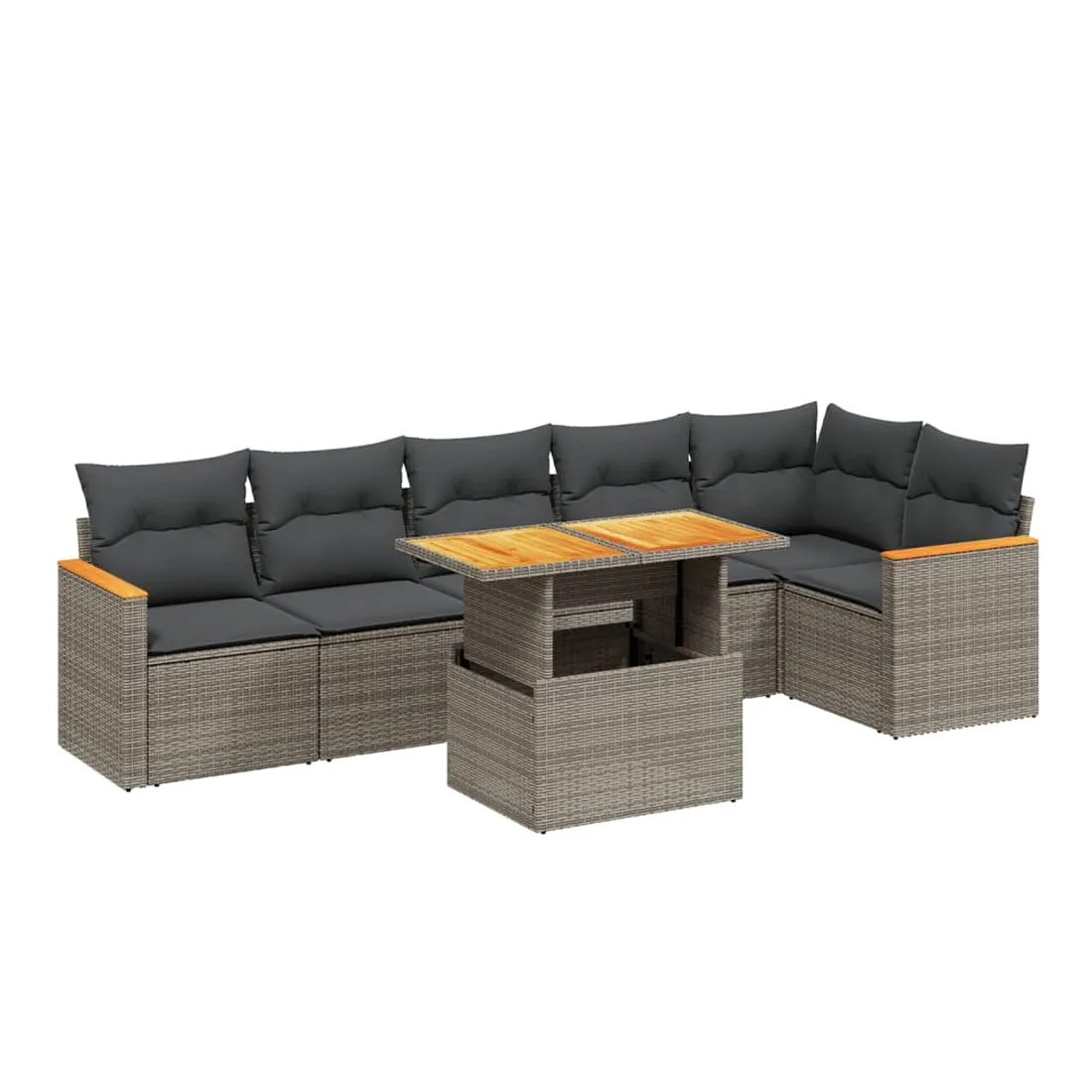 Salon de jardin avec coussins 7 pcs gris résine tressée