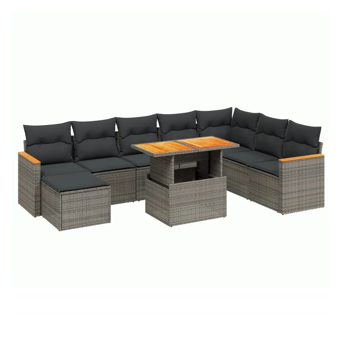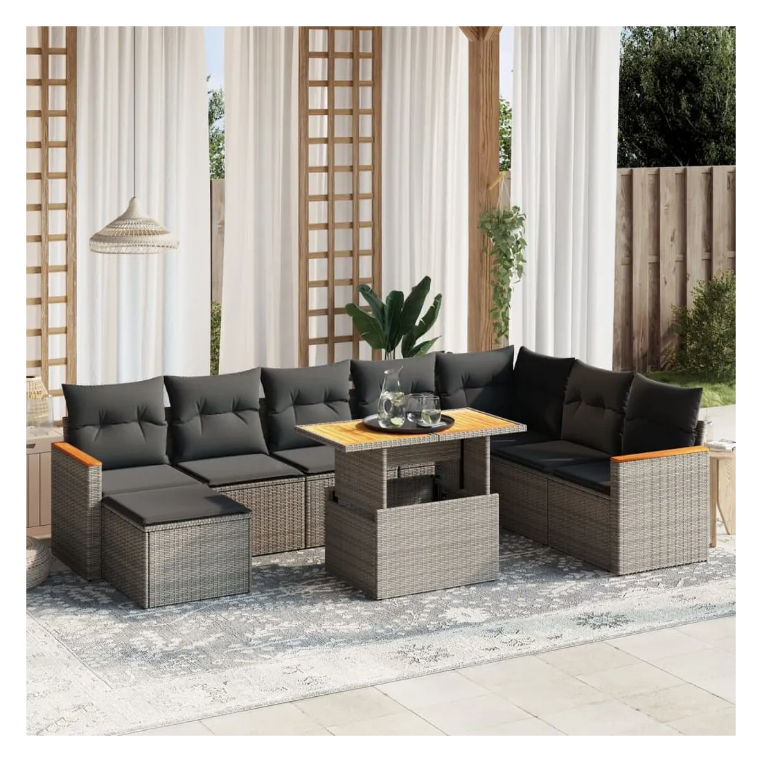 Cet ensemble de canapés de jardin est le complément parfait de votre arrière-cour, terrasse ou patio, offrant un espace confortable et accueillant pour discuter avec la famille et les amis ou simplement se détendre et profiter de l'extérieur. Matériau durable : la résine tressée, également connue sous le nom de poly rotin, est un matériau synthétique solide et nécessitant peu d'entretien qui ressemble au rotin naturel. Il est léger, facile à nettoyer et couramment utilisé pour les meubles d'extérieur en raison de sa durabilité et de ses propriétés de résistance aux intempéries.Dessus de table réglable : le dessus de table peut être soulevé pour rendre la table plus haute, ce qui transforme la table d'extérieur d'une table basse à une table de salle à manger. Elle est parfaite pour recevoir des invités ou prendre des repas à l'extérieur.Expérience d'assise confortable : ce mobilier d'extérieur, doté de coussins épais, offre une expérience d'assise confortable.Housse amovible et lavable : ces coussins de siège sont dotés de housses amovibles pour un lavage et un entretien faciles.Conception modulaire : cet ensemble de meubles d'extérieur a une conception modulaire, ce qui le rend complètement flexible et facile à déplacer, afin que vous puissiez créer un agencement de meubles d'extérieur personnalisé. Bon à savoir :Pour que vos meubles d'extérieur restent beaux, nous vous recommandons de les protéger avec une housse imperméable.