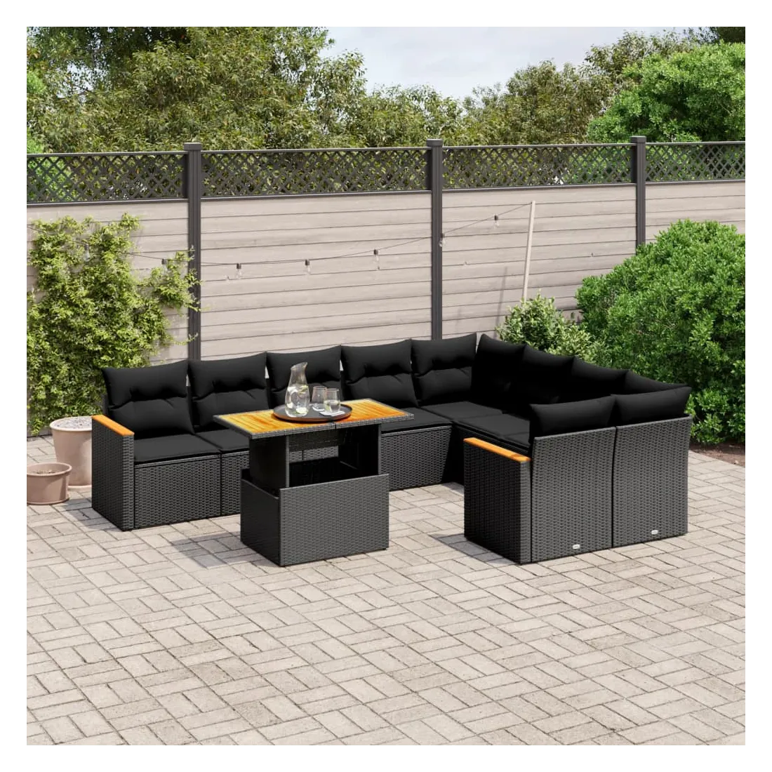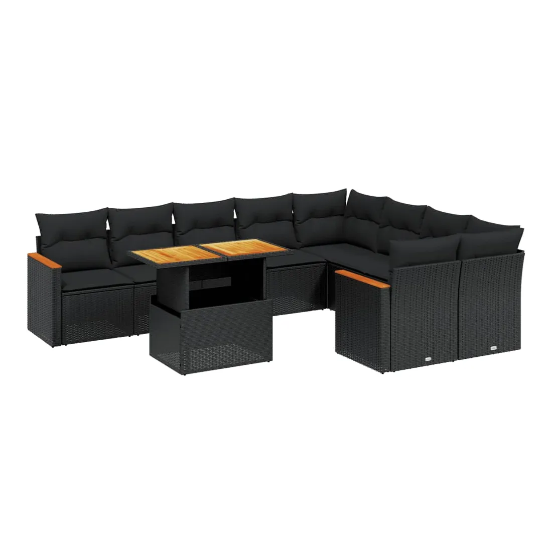 Salon de jardin 10 pcs avec coussins noir résine tressée