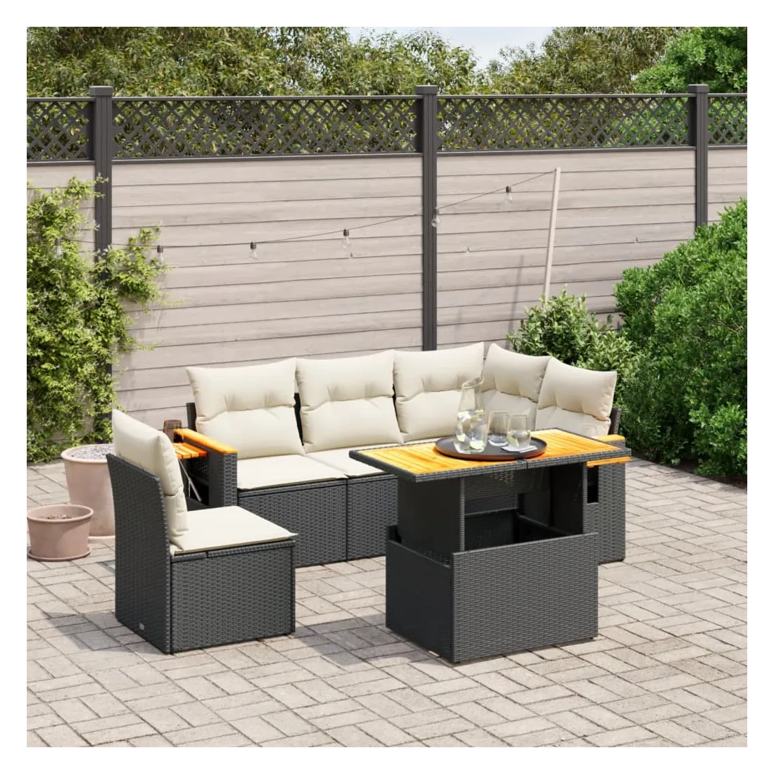 Cet ensemble de canapés de jardin est le complément parfait de votre arrière-cour, terrasse ou patio, offrant un espace confortable et accueillant pour discuter avec la famille et les amis ou simplement se détendre et profiter de l'extérieur. Matériau durable : la résine tressée, également connue sous le nom de poly rotin, est un matériau synthétique solide et nécessitant peu d'entretien qui ressemble au rotin naturel. Il est léger, facile à nettoyer et couramment utilisé pour les meubles d'extérieur en raison de sa durabilité et de ses propriétés de résistance aux intempéries.Dessus de table réglable : le dessus de table peut être soulevé pour rendre la table plus haute, ce qui transforme la table d'extérieur d'une table basse à une table de salle à manger. Elle est parfaite pour recevoir des invités ou prendre des repas à l'extérieur.Table d'appoint pratique : ce mobilier d'extérieur comprend une table d'appoint pliable avec un ressort à gaz sur les accoudoirs, offrant un endroit pratique pour garder vos essentiels à portée de main.Housse amovible et lavable : ces coussins de siège sont dotés de housses amovibles pour un lavage et un entretien faciles.Conception modulaire : cet ensemble de meubles d'extérieur a une conception modulaire, ce qui le rend complètement flexible et facile à déplacer, afin que vous puissiez créer un agencement de meubles d'extérieur personnalisé. Bon à savoir :Pour que vos meubles d'extérieur restent beaux, nous vous recommandons de les protéger avec une housse imperméable.