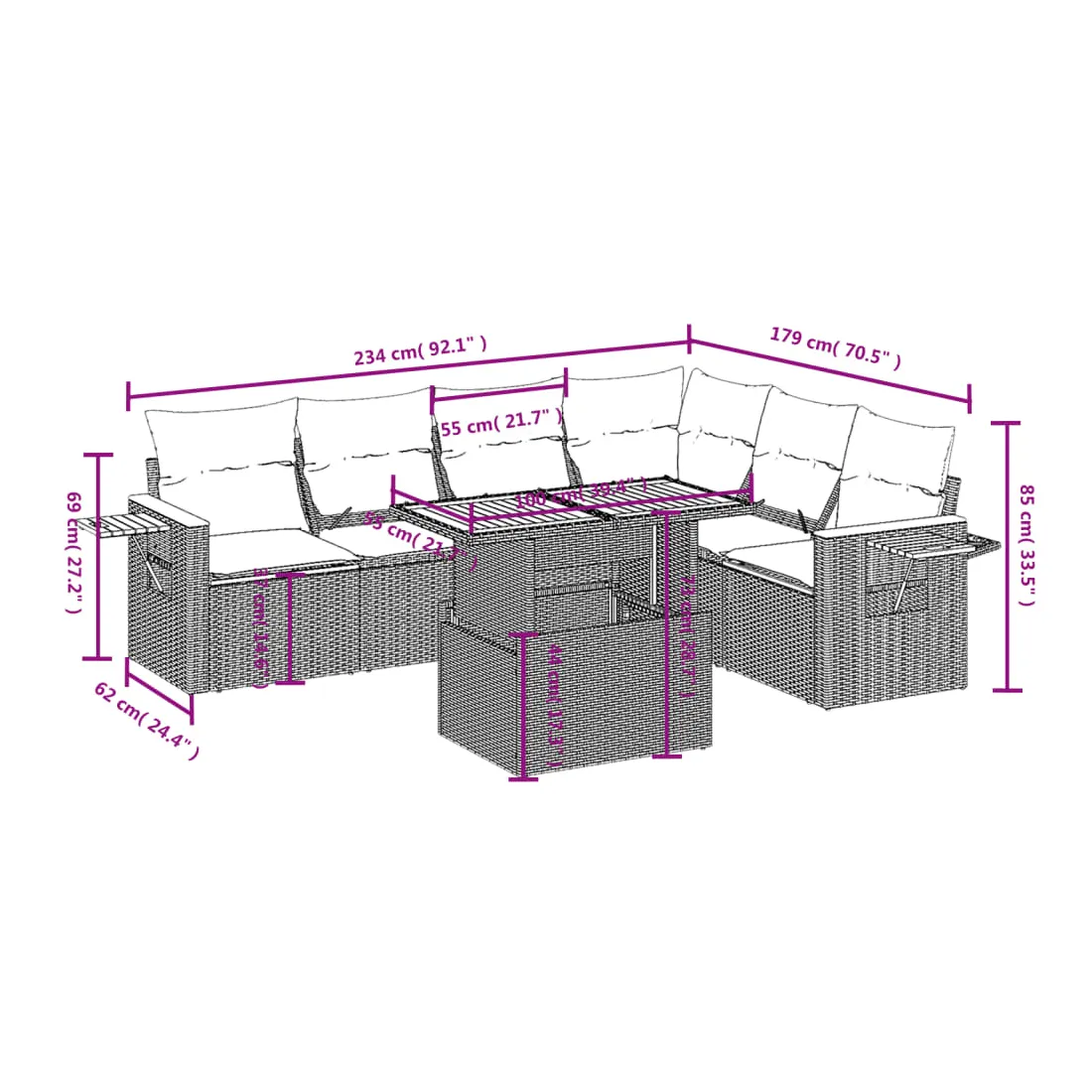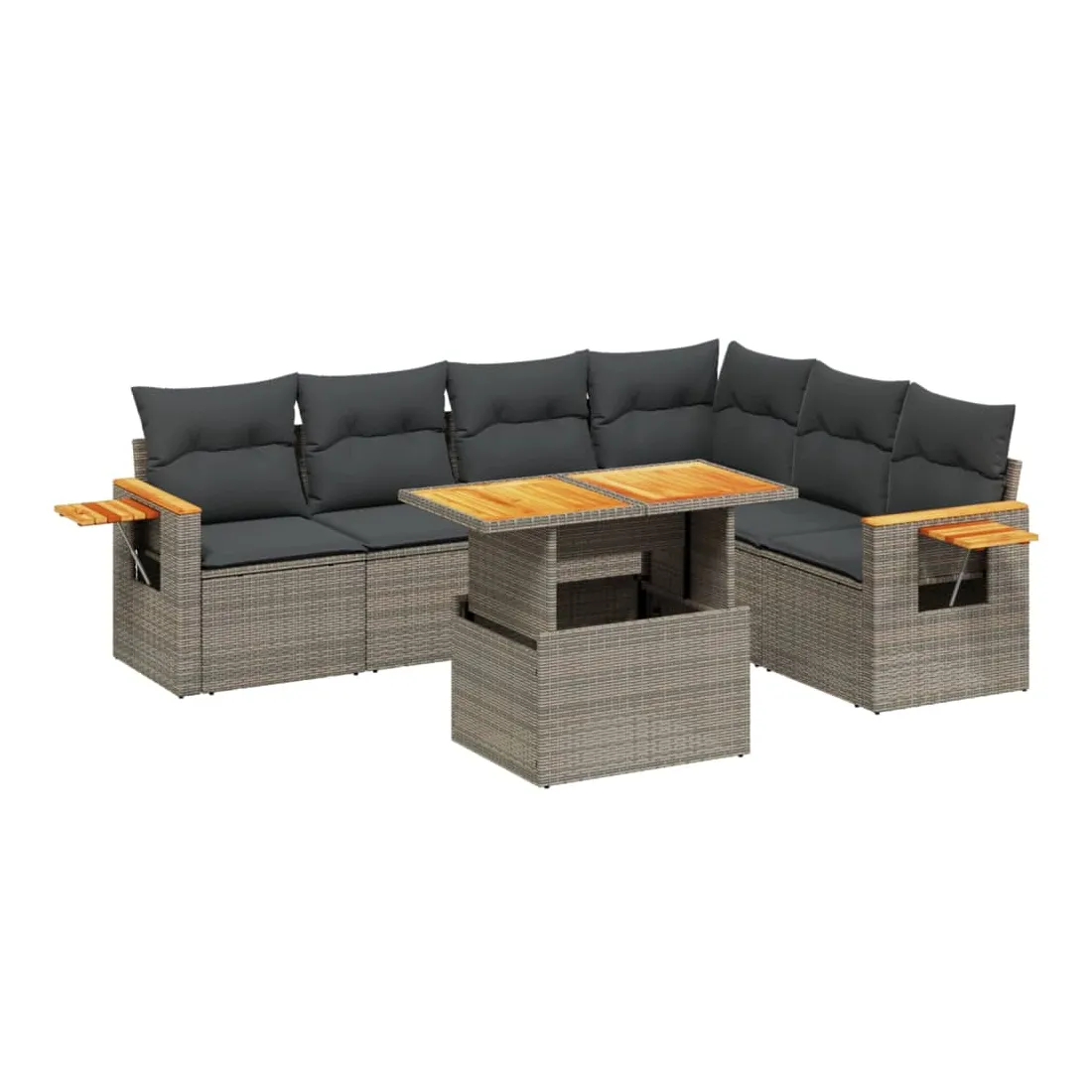 Cet ensemble de canapés de jardin est le complément parfait de votre arrière-cour, terrasse ou patio, offrant un espace confortable et accueillant pour discuter avec la famille et les amis ou simplement se détendre et profiter de l'extérieur. Matériau durable : la résine tressée, également connue sous le nom de poly rotin, est un matériau synthétique solide et nécessitant peu d'entretien qui ressemble au rotin naturel. Il est léger, facile à nettoyer et couramment utilisé pour les meubles d'extérieur en raison de sa durabilité et de ses propriétés de résistance aux intempéries.Dessus de table réglable : le dessus de table peut être soulevé pour rendre la table plus haute, ce qui transforme la table d'extérieur d'une table basse à une table de salle à manger. Elle est parfaite pour recevoir des invités ou prendre des repas à l'extérieur.Table d'appoint pratique : ce mobilier d'extérieur comprend une table d'appoint pliable avec un ressort à gaz sur les accoudoirs, offrant un endroit pratique pour garder vos essentiels à portée de main.Housse amovible et lavable : ces coussins de siège sont dotés de housses amovibles pour un lavage et un entretien faciles.Conception modulaire : cet ensemble de meubles d'extérieur a une conception modulaire, ce qui le rend complètement flexible et facile à déplacer, afin que vous puissiez créer un agencement de meubles d'extérieur personnalisé. Bon à savoir :Pour que vos meubles d'extérieur restent beaux, nous vous recommandons de les protéger avec une housse imperméable.