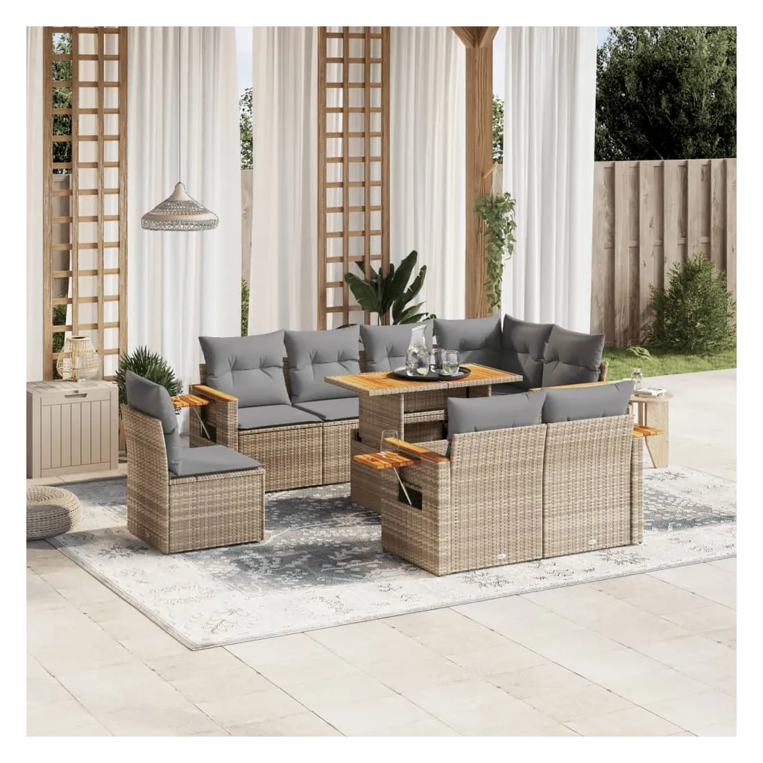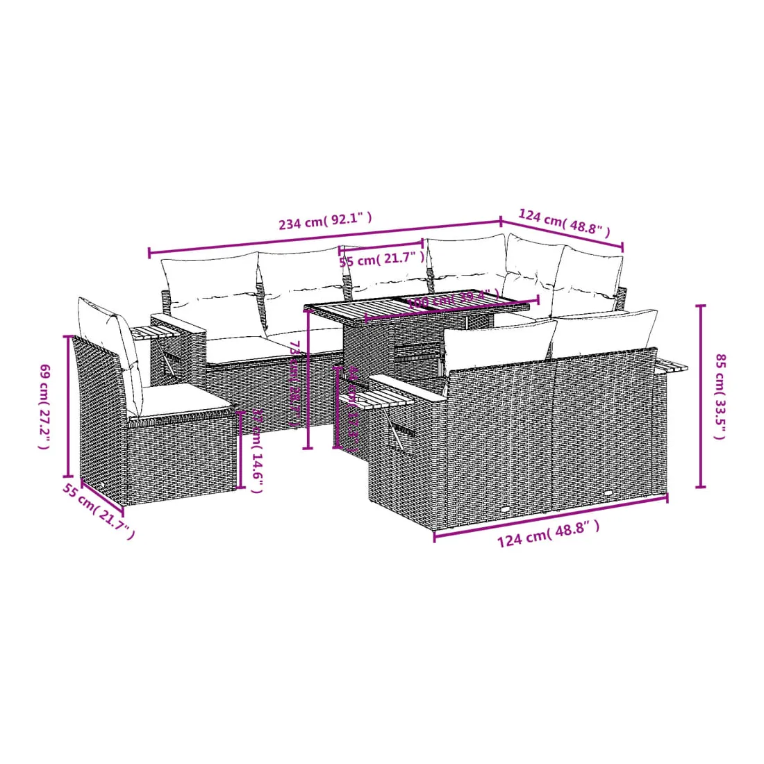 Cet ensemble de canapés de jardin est le complément parfait de votre arrière-cour, terrasse ou patio, offrant un espace confortable et accueillant pour discuter avec la famille et les amis ou simplement se détendre et profiter de l'extérieur. Matériau durable : la résine tressée, également connue sous le nom de poly rotin, est un matériau synthétique solide et nécessitant peu d'entretien qui ressemble au rotin naturel. Il est léger, facile à nettoyer et couramment utilisé pour les meubles d'extérieur en raison de sa durabilité et de ses propriétés de résistance aux intempéries.Dessus de table réglable : le dessus de table peut être soulevé pour rendre la table plus haute, ce qui transforme la table d'extérieur d'une table basse à une table de salle à manger. Elle est parfaite pour recevoir des invités ou prendre des repas à l'extérieur.Table d'appoint pratique : ce mobilier d'extérieur comprend une table d'appoint pliable avec un ressort à gaz sur les accoudoirs, offrant un endroit pratique pour garder vos essentiels à portée de main.Housse amovible et lavable : ces coussins de siège sont dotés de housses amovibles pour un lavage et un entretien faciles.Conception modulaire : cet ensemble de meubles d'extérieur a une conception modulaire, ce qui le rend complètement flexible et facile à déplacer, afin que vous puissiez créer un agencement de meubles d'extérieur personnalisé. Bon à savoir :Pour que vos meubles d'extérieur restent beaux, nous vous recommandons de les protéger avec une housse imperméable.