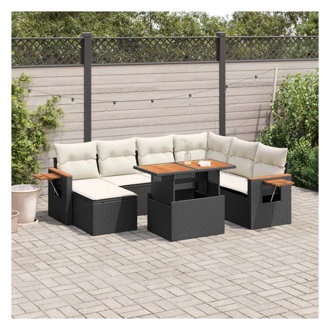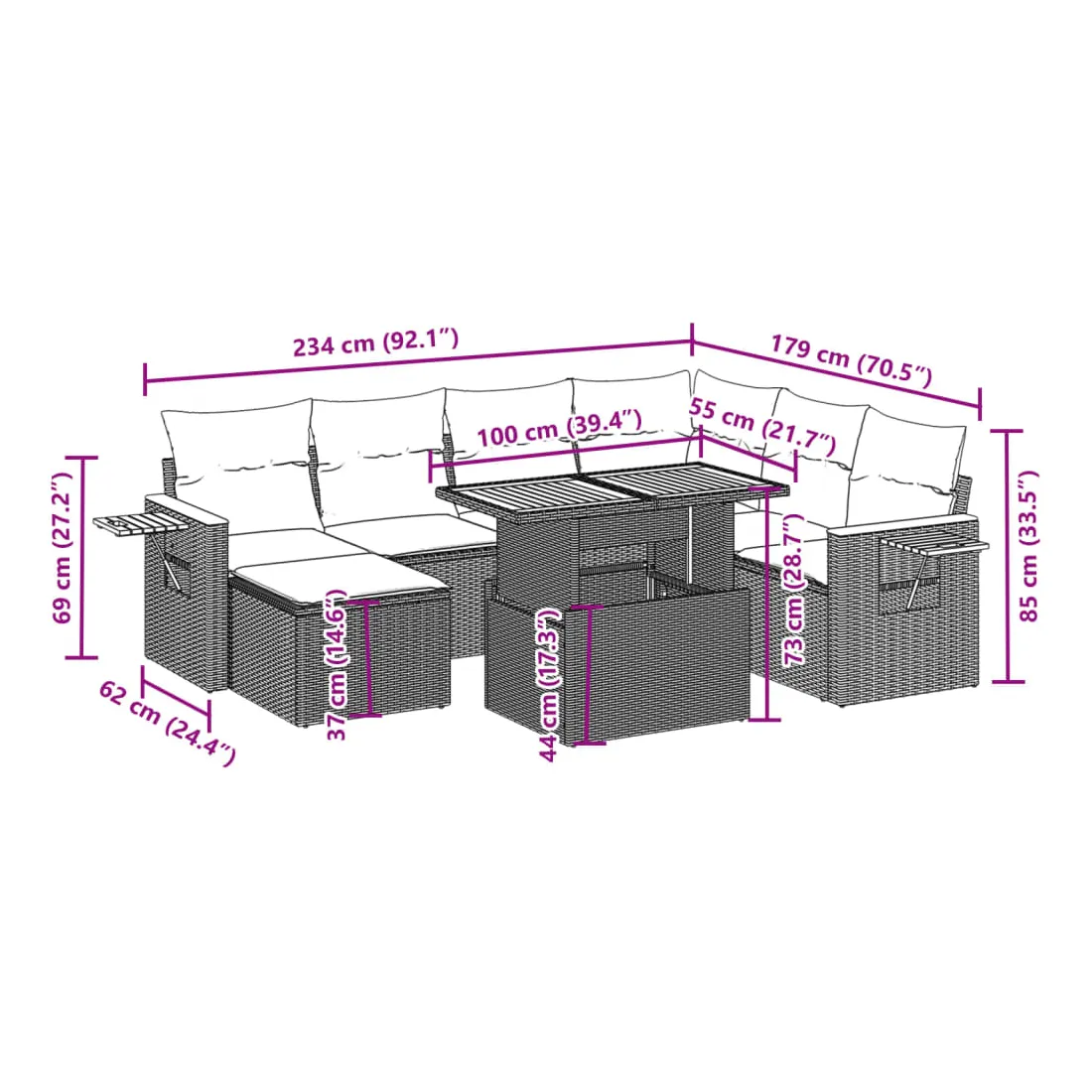 Cet ensemble de canapés de jardin est le complément parfait de votre arrière-cour, terrasse ou patio, offrant un espace confortable et accueillant pour discuter avec la famille et les amis ou simplement se détendre et profiter de l'extérieur. Matériau durable : la résine tressée, également connue sous le nom de poly rotin, est un matériau synthétique solide et nécessitant peu d'entretien qui ressemble au rotin naturel. Il est léger, facile à nettoyer et couramment utilisé pour les meubles d'extérieur en raison de sa durabilité et de ses propriétés de résistance aux intempéries.Dessus de table réglable : le dessus de table peut être soulevé pour rendre la table plus haute, ce qui transforme la table d'extérieur d'une table basse à une table de salle à manger. Elle est parfaite pour recevoir des invités ou prendre des repas à l'extérieur.Table d'appoint pratique : ce mobilier d'extérieur comprend une table d'appoint pliable avec un ressort à gaz sur les accoudoirs, offrant un endroit pratique pour garder vos essentiels à portée de main.Housse amovible et lavable : ces coussins de siège sont dotés de housses amovibles pour un lavage et un entretien faciles.Conception modulaire : cet ensemble de meubles d'extérieur a une conception modulaire, ce qui le rend complètement flexible et facile à déplacer, afin que vous puissiez créer un agencement de meubles d'extérieur personnalisé. Bon à savoir :Pour que vos meubles d'extérieur restent beaux, nous vous recommandons de les protéger avec une housse imperméable.