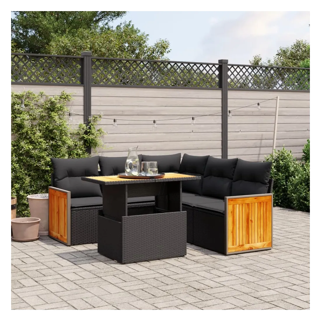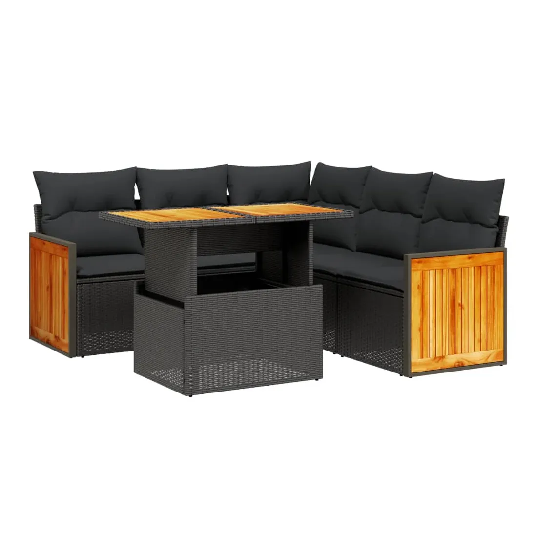Salon de jardin 6 pcs avec coussins noir résine tressée