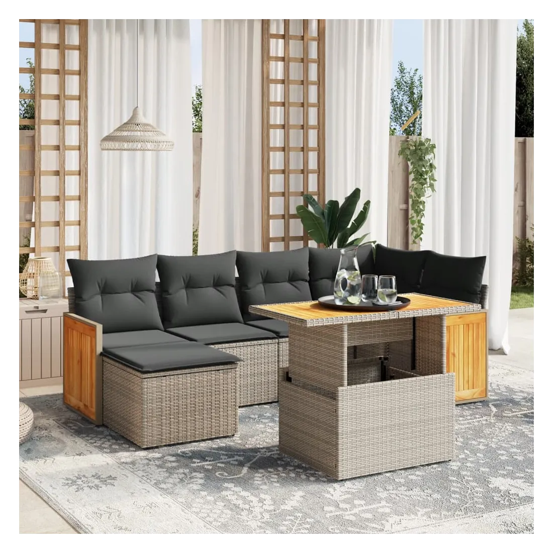 - Matériau : résine tressée, acier enduit de poudre, bois d'acacia massif avec finition à l'huile