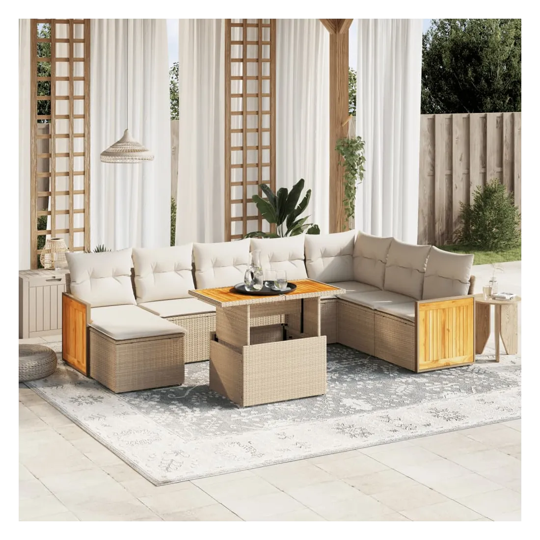 - Matériau : résine tressée, acier enduit de poudre, bois d'acacia massif avec finition à l'huile
