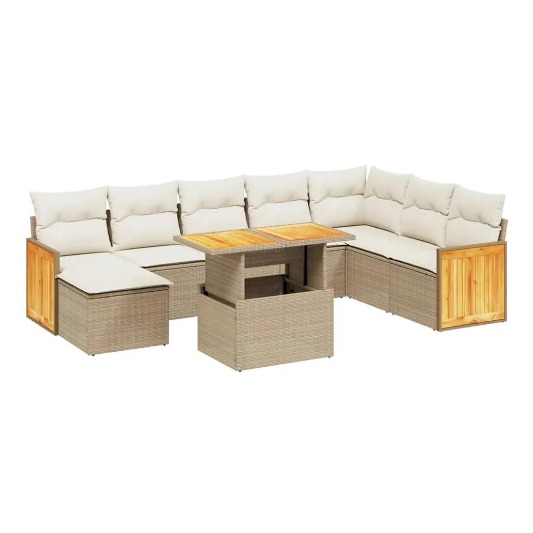 Cet ensemble de canapés de jardin est le complément parfait de votre arrière-cour, terrasse ou patio, offrant un espace confortable et accueillant pour discuter avec la famille et les amis ou simplement se détendre et profiter de l'extérieur. Matériau durable : la résine tressée, également connue sous le nom de poly rotin, est un matériau synthétique solide et nécessitant peu d'entretien qui ressemble au rotin naturel. Il est léger, facile à nettoyer et couramment utilisé pour les meubles d'extérieur en raison de sa durabilité et de ses propriétés de résistance aux intempéries.Dessus de table réglable : le dessus de table peut être soulevé pour rendre la table plus haute, ce qui transforme la table d'extérieur d'une table basse à une table de salle à manger. Elle est parfaite pour recevoir des invités ou prendre des repas à l'extérieur.Housse amovible et lavable : ces coussins de siège sont dotés de housses amovibles pour un lavage et un entretien faciles.Conception modulaire : cet ensemble de meubles d'extérieur a une conception modulaire, ce qui le rend complètement flexible et facile à déplacer, afin que vous puissiez créer un agencement de meubles d'extérieur personnalisé. Bon à savoir :Pour que vos meubles d'extérieur restent beaux, nous vous recommandons de les protéger avec une housse imperméable.