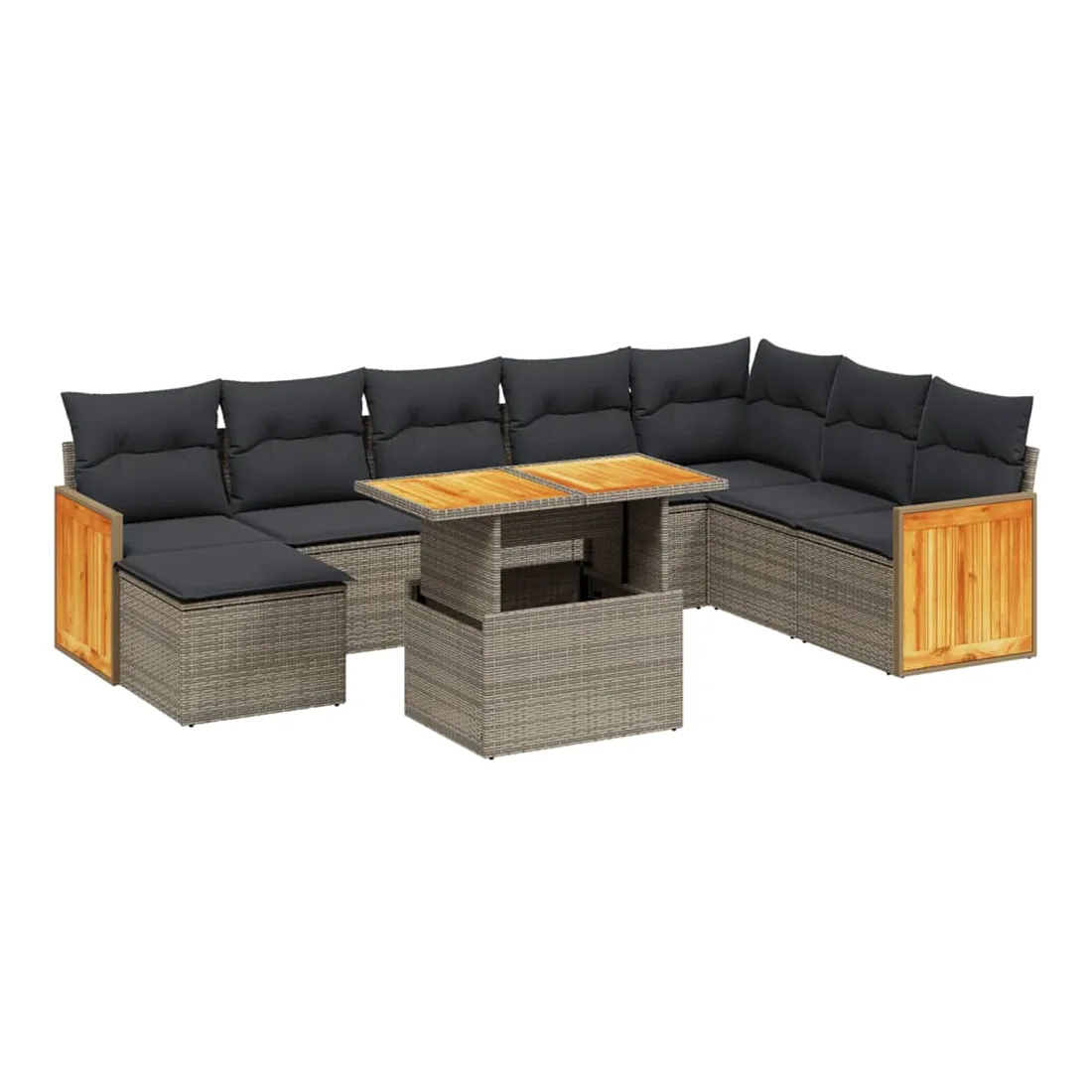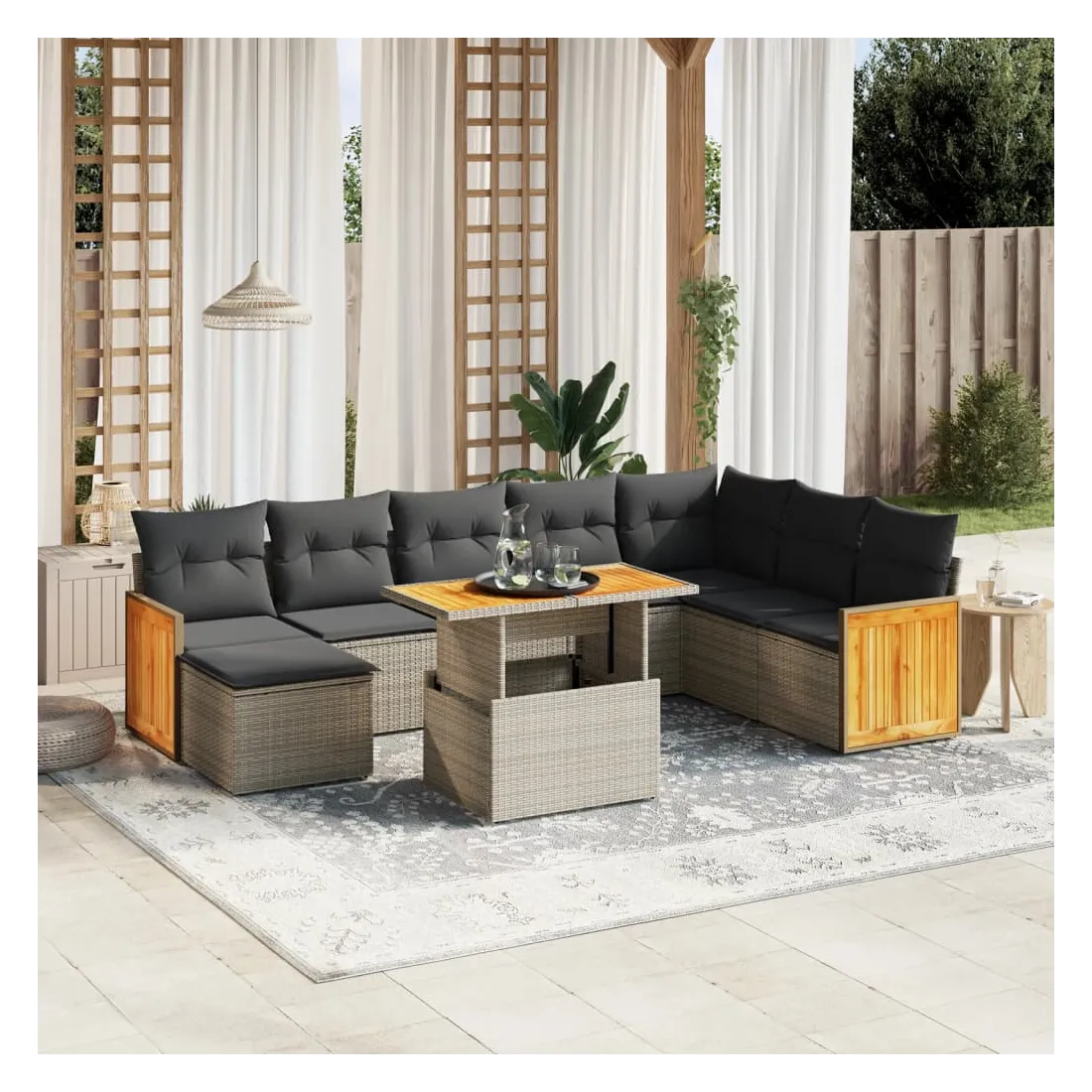 Cet ensemble de canapés de jardin est le complément parfait de votre arrière-cour, terrasse ou patio, offrant un espace confortable et accueillant pour discuter avec la famille et les amis ou simplement se détendre et profiter de l'extérieur. Matériau durable : la résine tressée, également connue sous le nom de poly rotin, est un matériau synthétique solide et nécessitant peu d'entretien qui ressemble au rotin naturel. Il est léger, facile à nettoyer et couramment utilisé pour les meubles d'extérieur en raison de sa durabilité et de ses propriétés de résistance aux intempéries.Dessus de table réglable : le dessus de table peut être soulevé pour rendre la table plus haute, ce qui transforme la table d'extérieur d'une table basse à une table de salle à manger. Elle est parfaite pour recevoir des invités ou prendre des repas à l'extérieur.Housse amovible et lavable : ces coussins de siège sont dotés de housses amovibles pour un lavage et un entretien faciles.Conception modulaire : cet ensemble de meubles d'extérieur a une conception modulaire, ce qui le rend complètement flexible et facile à déplacer, afin que vous puissiez créer un agencement de meubles d'extérieur personnalisé. Bon à savoir :Pour que vos meubles d'extérieur restent beaux, nous vous recommandons de les protéger avec une housse imperméable.