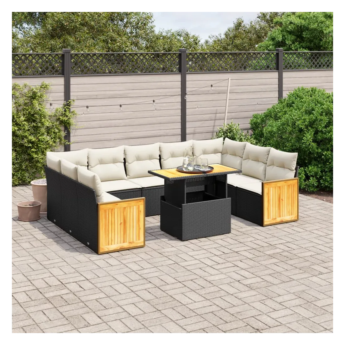 Cet ensemble de canapés de jardin est le complément parfait de votre arrière-cour, terrasse ou patio, offrant un espace confortable et accueillant pour discuter avec la famille et les amis ou simplement se détendre et profiter de l'extérieur. Matériau durable : la résine tressée, également connue sous le nom de poly rotin, est un matériau synthétique solide et nécessitant peu d'entretien qui ressemble au rotin naturel. Il est léger, facile à nettoyer et couramment utilisé pour les meubles d'extérieur en raison de sa durabilité et de ses propriétés de résistance aux intempéries.Dessus de table réglable : le dessus de table peut être soulevé pour rendre la table plus haute, ce qui transforme la table d'extérieur d'une table basse à une table de salle à manger. Elle est parfaite pour recevoir des invités ou prendre des repas à l'extérieur.Housse amovible et lavable : ces coussins de siège sont dotés de housses amovibles pour un lavage et un entretien faciles.Conception modulaire : cet ensemble de meubles d'extérieur a une conception modulaire, ce qui le rend complètement flexible et facile à déplacer, afin que vous puissiez créer un agencement de meubles d'extérieur personnalisé. Bon à savoir :Pour que vos meubles d'extérieur restent beaux, nous vous recommandons de les protéger avec une housse imperméable.