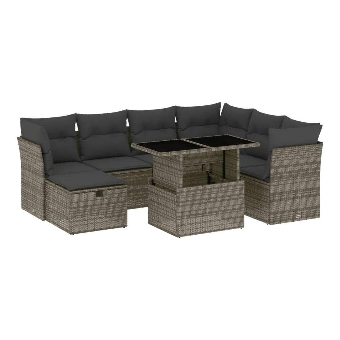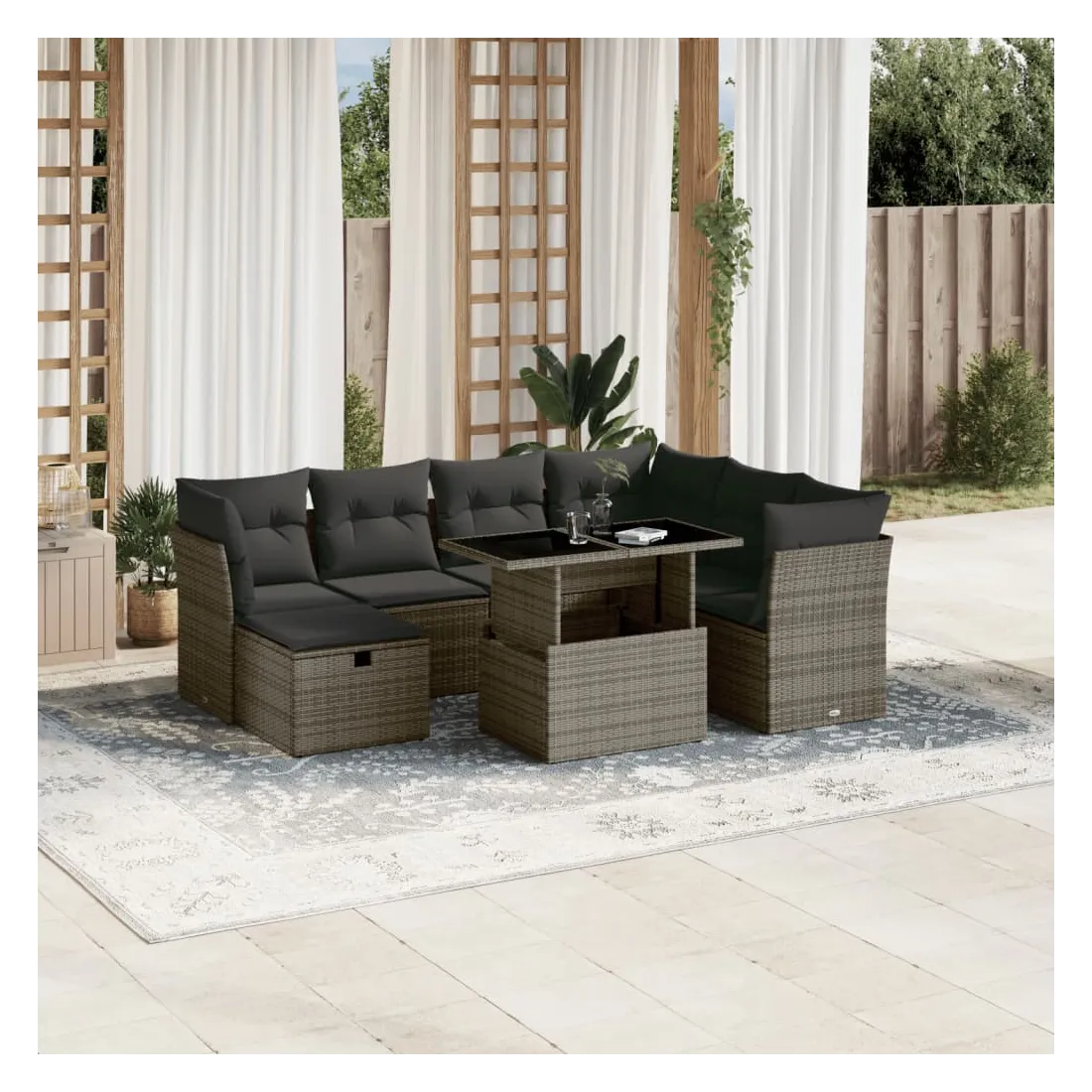 Cet ensemble de canapés de jardin est le complément parfait de votre arrière-cour, terrasse ou patio, offrant un espace confortable et accueillant pour discuter avec la famille et les amis ou simplement se détendre et profiter de l'extérieur. Matériau durable : la résine tressée, également connue sous le nom de poly rotin, est un matériau synthétique solide et nécessitant peu d'entretien qui ressemble au rotin naturel. Il est léger, facile à nettoyer et couramment utilisé pour les meubles d'extérieur en raison de sa durabilité et de ses propriétés de résistance aux intempéries.Dessus de table réglable : le dessus de table peut être soulevé pour rendre la table plus haute, ce qui transforme la table d'extérieur d'une table basse à une table de salle à manger. Elle est parfaite pour recevoir des invités ou prendre des repas à l'extérieur.Housse amovible et lavable : ces coussins de siège sont dotés de housses amovibles pour un lavage et un entretien faciles.Conception modulaire : cet ensemble de meubles d'extérieur a une conception modulaire, ce qui le rend complètement flexible et facile à déplacer, afin que vous puissiez créer un agencement de meubles d'extérieur personnalisé. Bon à savoir :Pour que vos meubles d'extérieur restent beaux, nous vous recommandons de les protéger avec une housse imperméable.