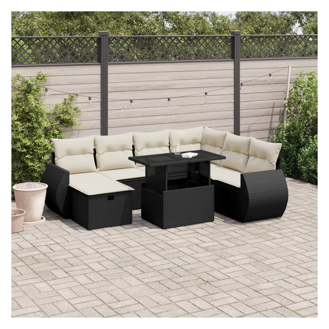 Cet ensemble de canapés de jardin est le complément parfait de votre arrière-cour, terrasse ou patio, offrant un espace confortable et accueillant pour discuter avec la famille et les amis ou simplement se détendre et profiter de l'extérieur. Matériau durable : la résine tressée, également connue sous le nom de poly rotin, est un matériau synthétique solide et nécessitant peu d'entretien qui ressemble au rotin naturel. Il est léger, facile à nettoyer et couramment utilisé pour les meubles d'extérieur en raison de sa durabilité et de ses propriétés de résistance aux intempéries.Dessus de table réglable : le dessus de table peut être soulevé pour rendre la table plus haute, ce qui transforme la table d'extérieur d'une table basse à une table de salle à manger. Elle est parfaite pour recevoir des invités ou prendre des repas à l'extérieur.Dessus en verre : le dessus de la table d'extérieur est fabriqué en verre trempé solide et durable, ce qui le rend facile à nettoyer avec un chiffon humide et ajoute une touche d'élégance à votre espace extérieur.Housse amovible et lavable : ces coussins de siège sont dotés de housses amovibles pour un lavage et un entretien faciles.Conception modulaire : cet ensemble de meubles d'extérieur a une conception modulaire, ce qui le rend complètement flexible et facile à déplacer, afin que vous puissiez créer un agencement de meubles d'extérieur personnalisé. Bon à savoir :Pour que vos meubles d'extérieur restent beaux, nous vous recommandons de les protéger avec une housse imperméable.