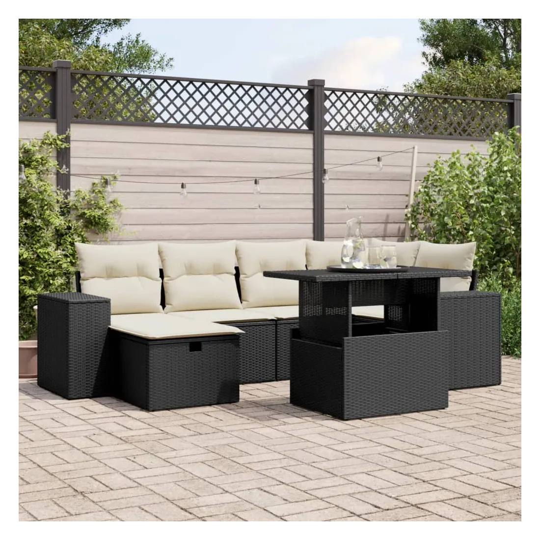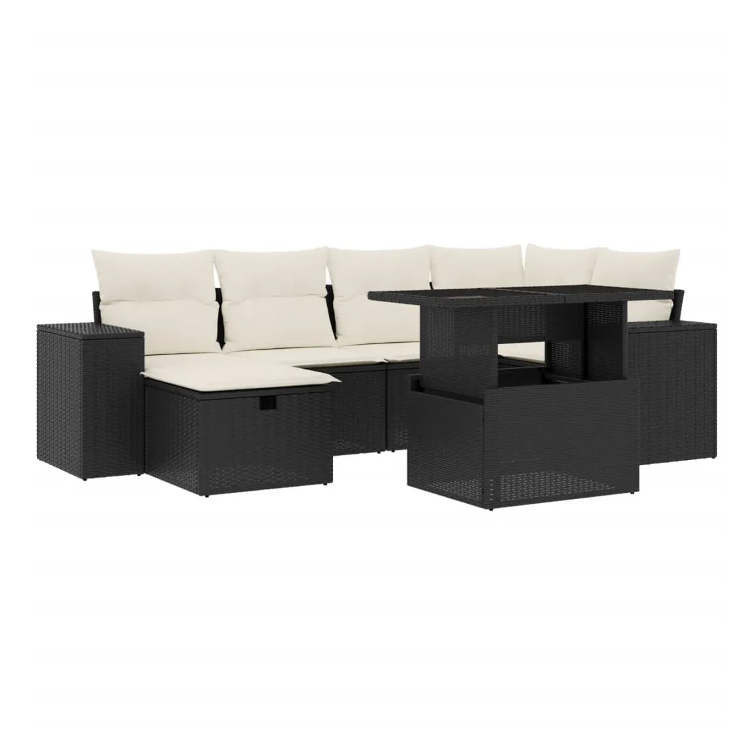 Cet ensemble de canapés de jardin est le complément parfait de votre arrière-cour, terrasse ou patio, offrant un espace confortable et accueillant pour discuter avec la famille et les amis ou simplement se détendre et profiter de l'extérieur. Matériau durable : la résine tressée, également connue sous le nom de poly rotin, est un matériau synthétique solide et nécessitant peu d'entretien qui ressemble au rotin naturel. Il est léger, facile à nettoyer et couramment utilisé pour les meubles d'extérieur en raison de sa durabilité et de ses propriétés de résistance aux intempéries.Dessus de table réglable : le dessus de table peut être soulevé pour rendre la table plus haute, ce qui transforme la table d'extérieur d'une table basse à une table de salle à manger. Elle est parfaite pour recevoir des invités ou prendre des repas à l'extérieur.Dessus en verre : le dessus de la table d'extérieur est fabriqué en verre trempé solide et durable, ce qui le rend facile à nettoyer avec un chiffon humide et ajoute une touche d'élégance à votre espace extérieur.Housse amovible et lavable : ces coussins de siège sont dotés de housses amovibles pour un lavage et un entretien faciles.Conception modulaire : cet ensemble de meubles d'extérieur a une conception modulaire, ce qui le rend complètement flexible et facile à déplacer, afin que vous puissiez créer un agencement de meubles d'extérieur personnalisé. Bon à savoir :Pour que vos meubles d'extérieur restent beaux, nous vous recommandons de les protéger avec une housse imperméable.