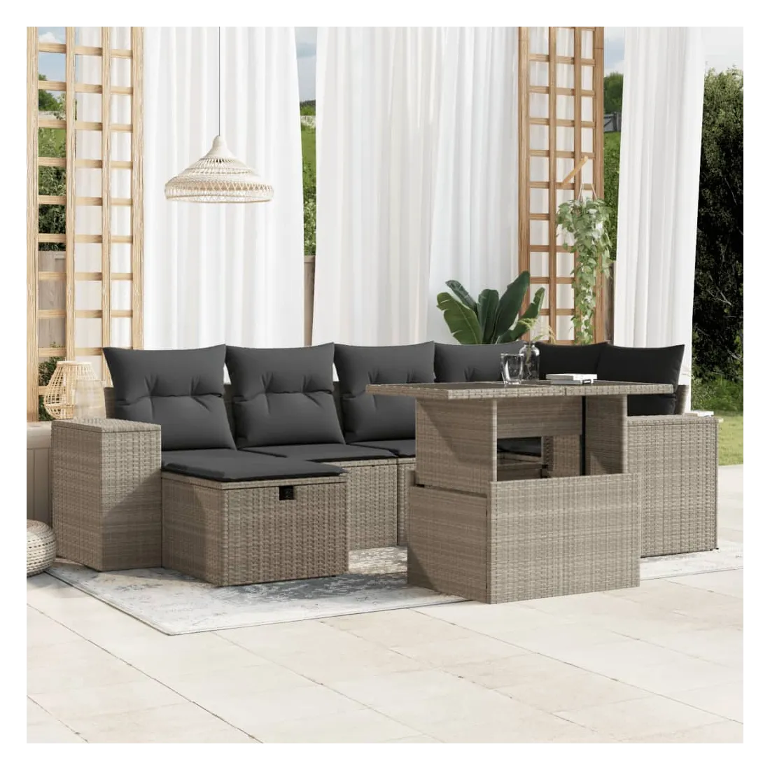 Cet ensemble de canapés de jardin est le complément parfait de votre arrière-cour, terrasse ou patio, offrant un espace confortable et accueillant pour discuter avec la famille et les amis ou simplement se détendre et profiter de l'extérieur. Matériau durable : la résine tressée, également connue sous le nom de poly rotin, est un matériau synthétique solide et nécessitant peu d'entretien qui ressemble au rotin naturel. Elle est légère, facile à nettoyer et couramment utilisée pour les meubles d'extérieur en raison de sa durabilité et de ses propriétés de résistance aux intempéries.Dessus de table réglable : le dessus de table peut être soulevé pour rendre la table plus haute, ce qui transforme la table d'extérieur d'une table basse à une table de salle à manger. Elle est parfaite pour recevoir des invités ou prendre des repas à l'extérieur.Dessus en verre : le dessus de la table d'extérieur est fabriqué en verre trempé solide et durable, ce qui le rend facile à nettoyer avec un chiffon humide et ajoute une touche d'élégance à votre espace extérieur.Housse amovible et lavable : ces coussins de siège sont dotés de housses amovibles pour un lavage et un entretien faciles.Conception modulaire : cet ensemble de meubles d'extérieur a une conception modulaire, ce qui le rend complètement flexible et facile à déplacer, afin que vous puissiez créer un agencement de meubles d'extérieur personnalisé. Bon à savoir :Pour que vos meubles d'extérieur restent beaux, nous vous recommandons de les protéger avec une housse imperméable.