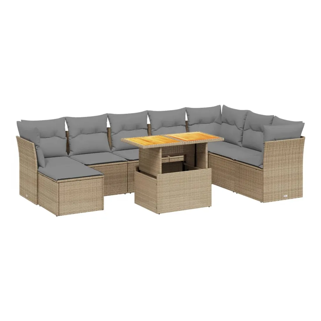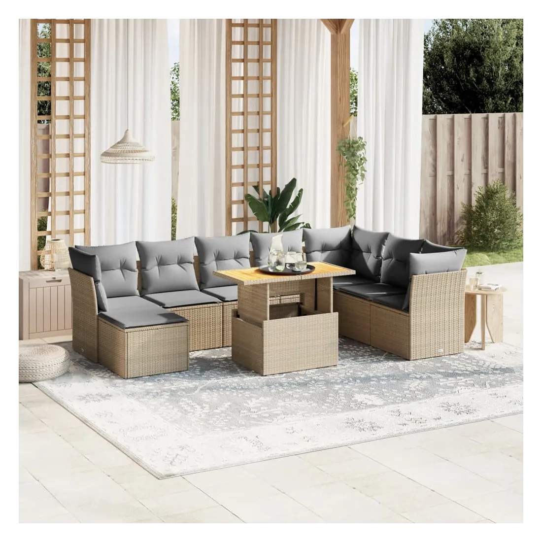 Cet ensemble de canapés de jardin est le complément parfait de votre arrière-cour, terrasse ou patio, offrant un espace confortable et accueillant pour discuter avec la famille et les amis ou simplement se détendre et profiter de l'extérieur. Matériau durable : la résine tressée, également connue sous le nom de poly rotin, est un matériau synthétique solide et nécessitant peu d'entretien qui ressemble au rotin naturel. Il est léger, facile à nettoyer et couramment utilisé pour les meubles d'extérieur en raison de sa durabilité et de ses propriétés de résistance aux intempéries.Dessus de table réglable : le dessus de table peut être soulevé pour rendre la table plus haute, ce qui transforme la table d'extérieur d'une table basse à une table de salle à manger. Elle est parfaite pour recevoir des invités ou prendre des repas à l'extérieur.Housse amovible et lavable : ces coussins de siège sont dotés de housses amovibles pour un lavage et un entretien faciles.Conception modulaire : cet ensemble de meubles d'extérieur a une conception modulaire, ce qui le rend complètement flexible et facile à déplacer, afin que vous puissiez créer un agencement de meubles d'extérieur personnalisé. Bon à savoir :Pour que vos meubles d'extérieur restent beaux, nous vous recommandons de les protéger avec une housse imperméable.