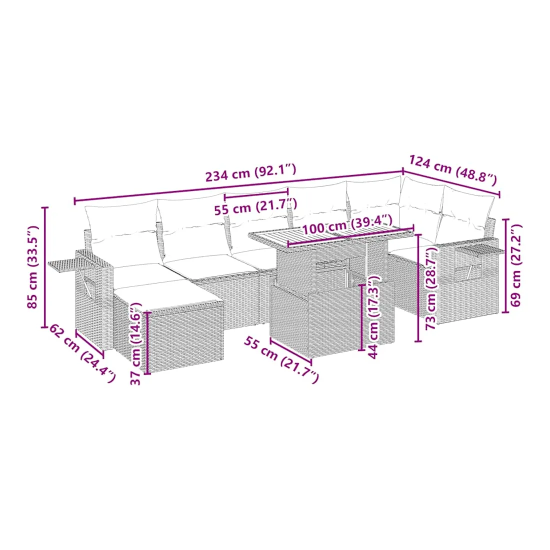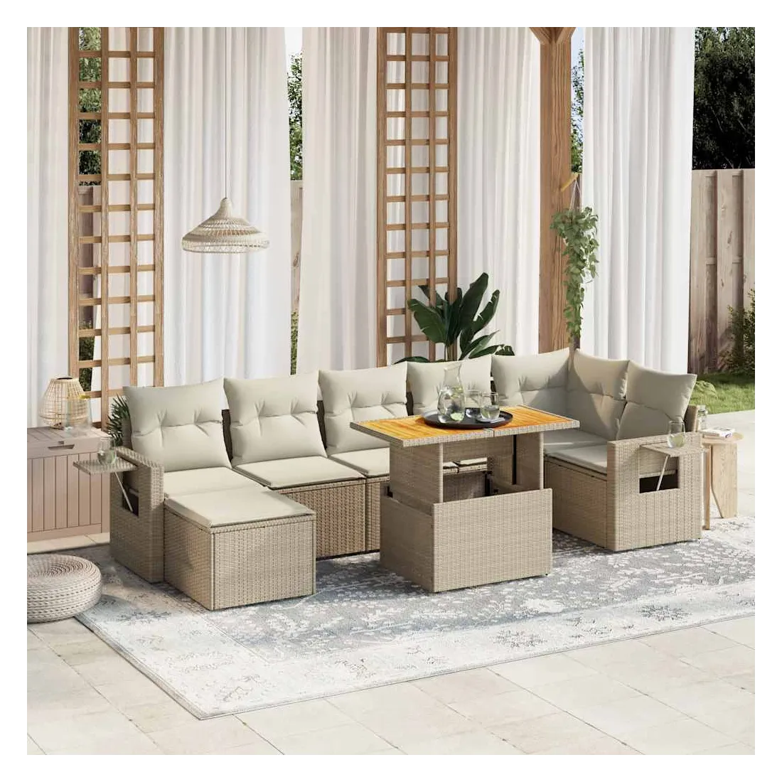 Cet ensemble de canapés de jardin est le complément parfait de votre arrière-cour, terrasse ou patio, offrant un espace confortable et accueillant pour discuter avec la famille et les amis ou simplement se détendre et profiter de l'extérieur. Matériau durable : la résine tressée, également connue sous le nom de poly rotin, est un matériau synthétique solide et nécessitant peu d'entretien qui ressemble au rotin naturel. Il est léger, facile à nettoyer et couramment utilisé pour les meubles d'extérieur en raison de sa durabilité et de ses propriétés de résistance aux intempéries.Dessus de table réglable : le dessus de table peut être soulevé pour rendre la table plus haute, ce qui transforme la table d'extérieur d'une table basse à une table de salle à manger. Elle est parfaite pour recevoir des invités ou prendre des repas à l'extérieur.Housse amovible et lavable : ces coussins de siège sont dotés de housses amovibles pour un lavage et un entretien faciles.Conception modulaire : cet ensemble de meubles d'extérieur a une conception modulaire, ce qui le rend complètement flexible et facile à déplacer, afin que vous puissiez créer un agencement de meubles d'extérieur personnalisé. Bon à savoir :Pour que vos meubles d'extérieur restent beaux, nous vous recommandons de les protéger avec une housse imperméable.