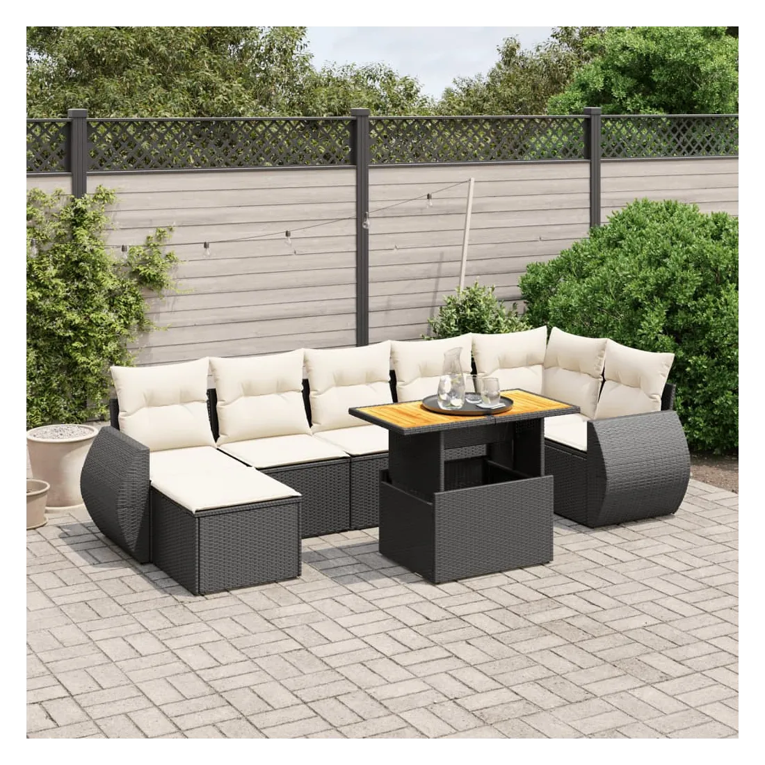 Cet ensemble de canapés de jardin est le complément parfait de votre arrière-cour, terrasse ou patio, offrant un espace confortable et accueillant pour discuter avec la famille et les amis ou simplement se détendre et profiter de l'extérieur. Matériau durable : la résine tressée, également connue sous le nom de poly rotin, est un matériau synthétique solide et nécessitant peu d'entretien qui ressemble au rotin naturel. Il est léger, facile à nettoyer et couramment utilisé pour les meubles d'extérieur en raison de sa durabilité et de ses propriétés de résistance aux intempéries.Dessus de table réglable : le dessus de table peut être soulevé pour rendre la table plus haute, ce qui transforme la table d'extérieur d'une table basse à une table de salle à manger. Elle est parfaite pour recevoir des invités ou prendre des repas à l'extérieur.Housse amovible et lavable : ces coussins de siège sont dotés de housses amovibles pour un lavage et un entretien faciles.Conception modulaire : cet ensemble de meubles d'extérieur a une conception modulaire, ce qui le rend complètement flexible et facile à déplacer, afin que vous puissiez créer un agencement de meubles d'extérieur personnalisé. Bon à savoir :Pour que vos meubles d'extérieur restent beaux, nous vous recommandons de les protéger avec une housse imperméable.