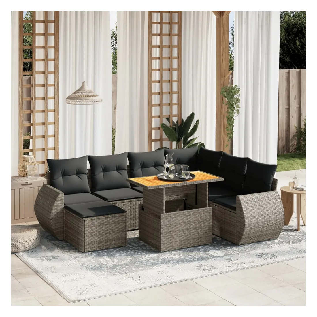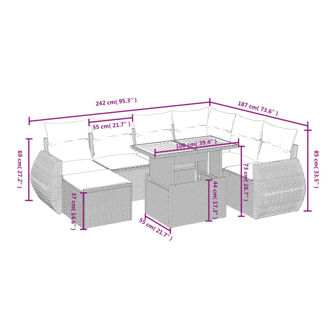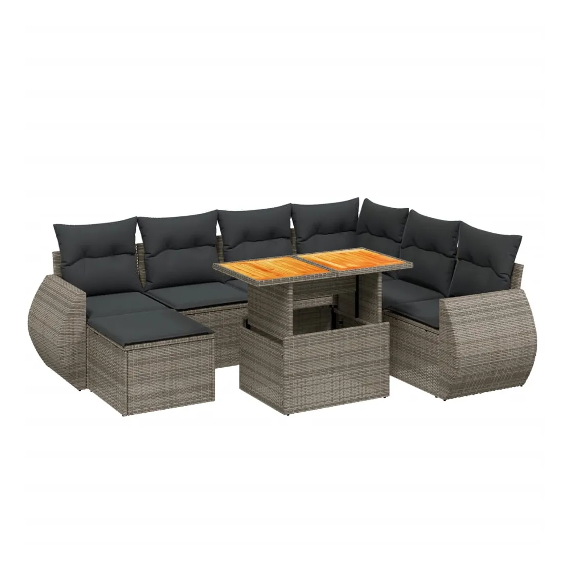 Salon de jardin 8 pcs avec coussins gris résine tressée