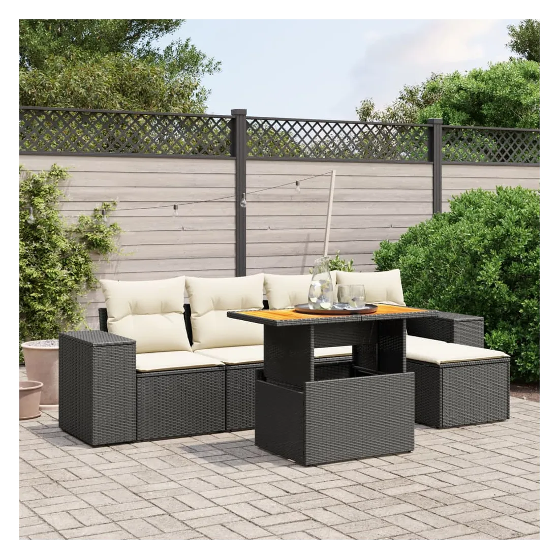 - Matériau : résine tressée, acier enduit de poudre, bois d'acacia massif avec finition à l'huile