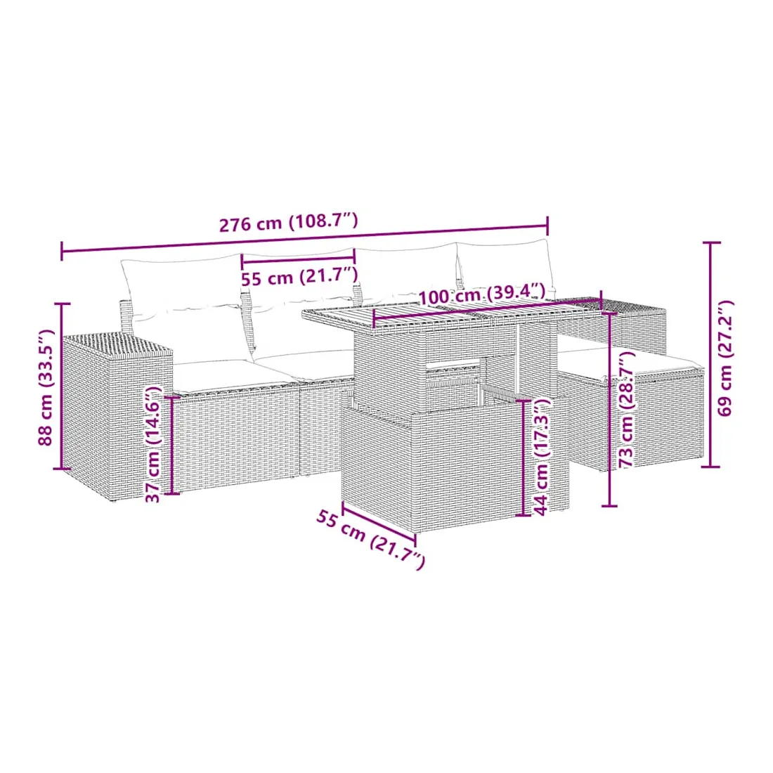 Cet ensemble de canapés de jardin est le complément parfait de votre arrière-cour, terrasse ou patio, offrant un espace confortable et accueillant pour discuter avec la famille et les amis ou simplement se détendre et profiter de l'extérieur. Matériau durable : la résine tressée, également connue sous le nom de poly rotin, est un matériau synthétique solide et nécessitant peu d'entretien qui ressemble au rotin naturel. Il est léger, facile à nettoyer et couramment utilisé pour les meubles d'extérieur en raison de sa durabilité et de ses propriétés de résistance aux intempéries.Dessus de table réglable : le dessus de table peut être soulevé pour rendre la table plus haute, ce qui transforme la table d'extérieur d'une table basse à une table de salle à manger. Elle est parfaite pour recevoir des invités ou prendre des repas à l'extérieur.Housse amovible et lavable : ces coussins de siège sont dotés de housses amovibles pour un lavage et un entretien faciles.Conception modulaire : cet ensemble de meubles d'extérieur a une conception modulaire, ce qui le rend complètement flexible et facile à déplacer, afin que vous puissiez créer un agencement de meubles d'extérieur personnalisé. Bon à savoir :Pour que vos meubles d'extérieur restent beaux, nous vous recommandons de les protéger avec une housse imperméable.
