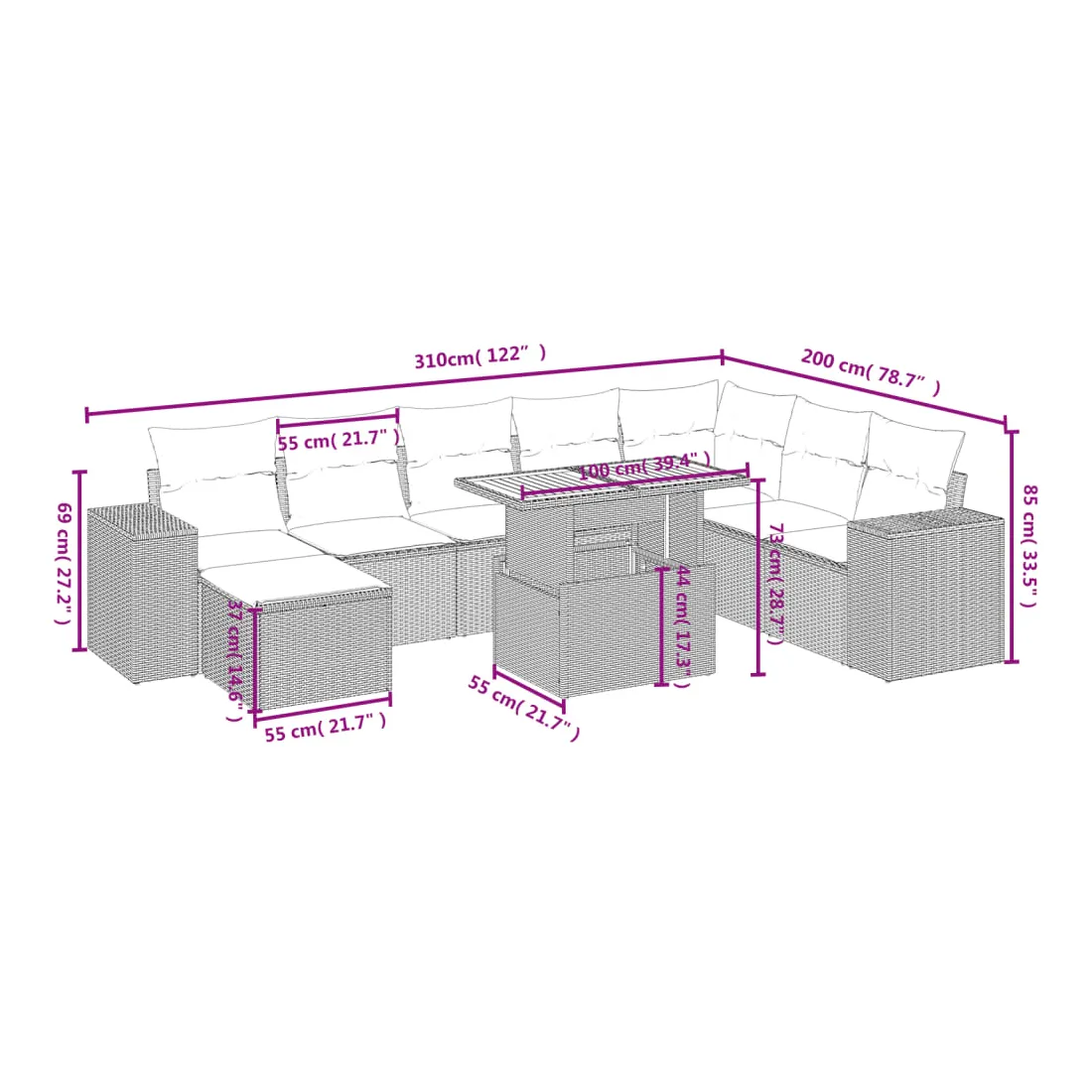 Cet ensemble de canapés de jardin est le complément parfait de votre arrière-cour, terrasse ou patio, offrant un espace confortable et accueillant pour discuter avec la famille et les amis ou simplement se détendre et profiter de l'extérieur. Matériau durable : la résine tressée, également connue sous le nom de poly rotin, est un matériau synthétique solide et nécessitant peu d'entretien qui ressemble au rotin naturel. Il est léger, facile à nettoyer et couramment utilisé pour les meubles d'extérieur en raison de sa durabilité et de ses propriétés de résistance aux intempéries.Dessus de table réglable : le dessus de table peut être soulevé pour rendre la table plus haute, ce qui transforme la table d'extérieur d'une table basse à une table de salle à manger. Elle est parfaite pour recevoir des invités ou prendre des repas à l'extérieur.Housse amovible et lavable : ces coussins de siège sont dotés de housses amovibles pour un lavage et un entretien faciles.Conception modulaire : cet ensemble de meubles d'extérieur a une conception modulaire, ce qui le rend complètement flexible et facile à déplacer, afin que vous puissiez créer un agencement de meubles d'extérieur personnalisé. Bon à savoir :Pour que vos meubles d'extérieur restent beaux, nous vous recommandons de les protéger avec une housse imperméable.