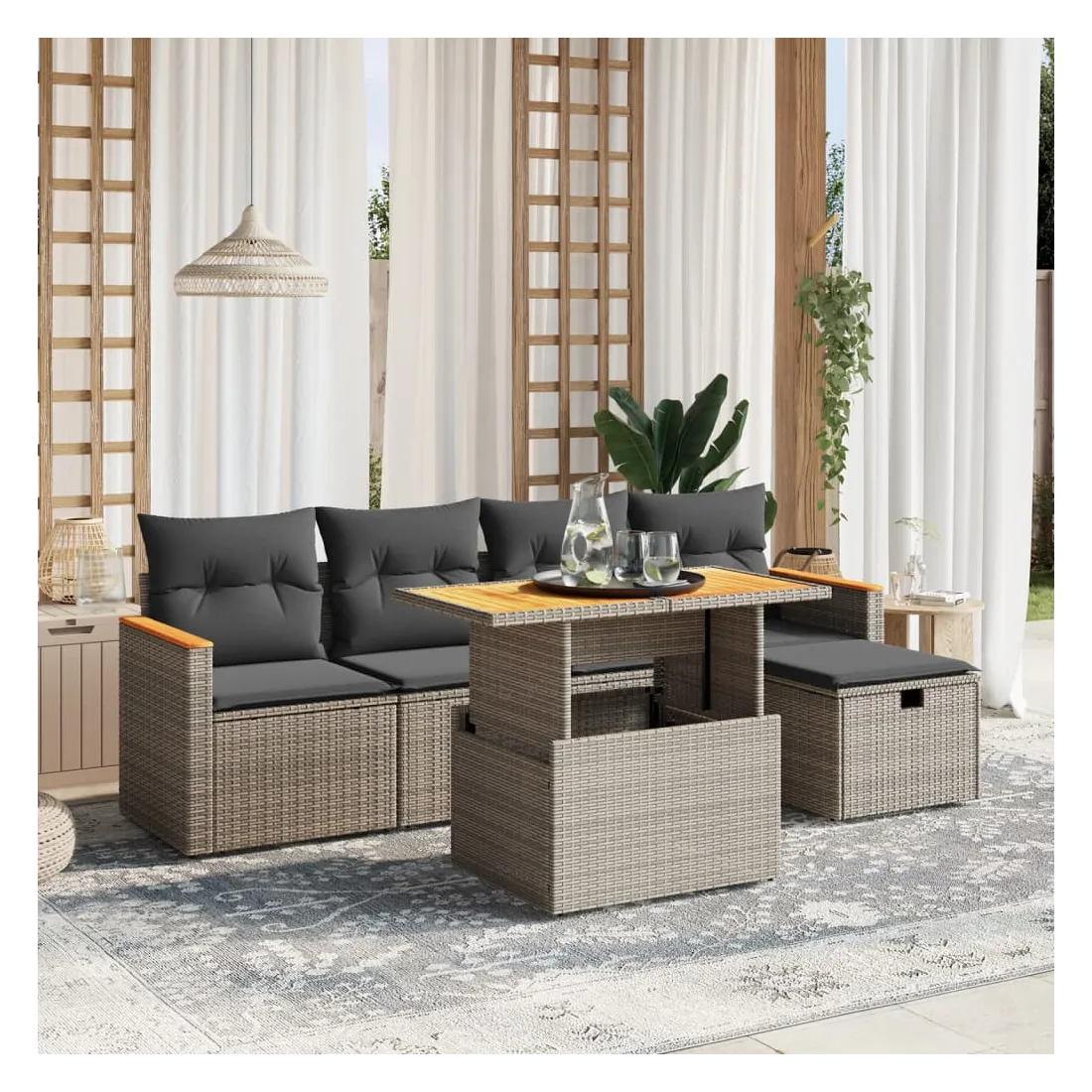 Cet ensemble de canapés de jardin est le complément parfait de votre arrière-cour, terrasse ou patio, offrant un espace confortable et accueillant pour discuter avec la famille et les amis ou simplement se détendre et profiter de l'extérieur. Matériau durable : la résine tressée, également connue sous le nom de poly rotin, est un matériau synthétique solide et nécessitant peu d'entretien qui ressemble au rotin naturel. Il est léger, facile à nettoyer et couramment utilisé pour les meubles d'extérieur en raison de sa durabilité et de ses propriétés de résistance aux intempéries.Dessus de table réglable : le dessus de table peut être soulevé pour rendre la table plus haute, ce qui transforme la table d'extérieur d'une table basse à une table de salle à manger. Elle est parfaite pour recevoir des invités ou prendre des repas à l'extérieur.Housse amovible et lavable : ces coussins de siège sont dotés de housses amovibles pour un lavage et un entretien faciles.Conception modulaire : cet ensemble de meubles d'extérieur a une conception modulaire, ce qui le rend complètement flexible et facile à déplacer, afin que vous puissiez créer un agencement de meubles d'extérieur personnalisé. Bon à savoir :Pour que vos meubles d'extérieur restent beaux, nous vous recommandons de les protéger avec une housse imperméable.