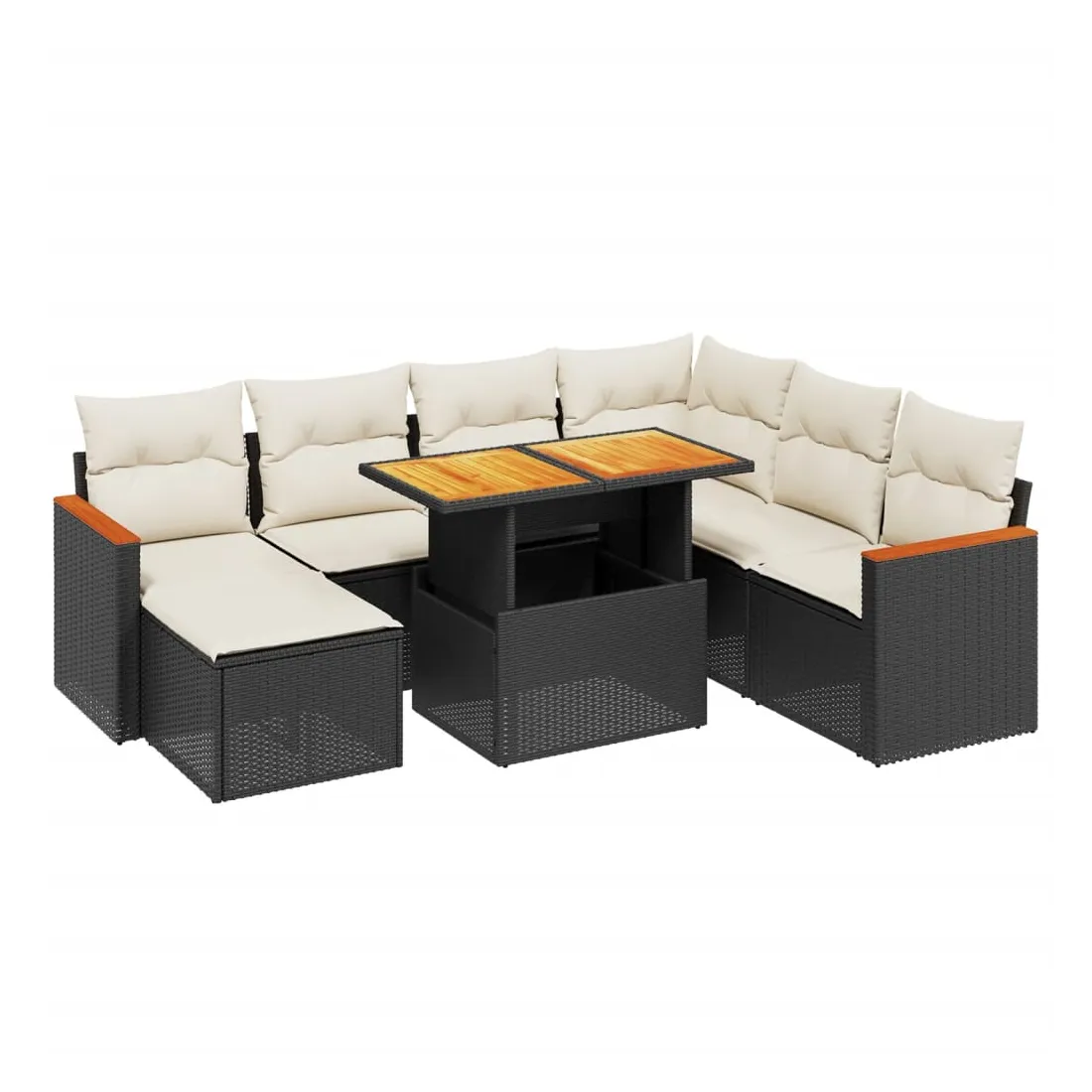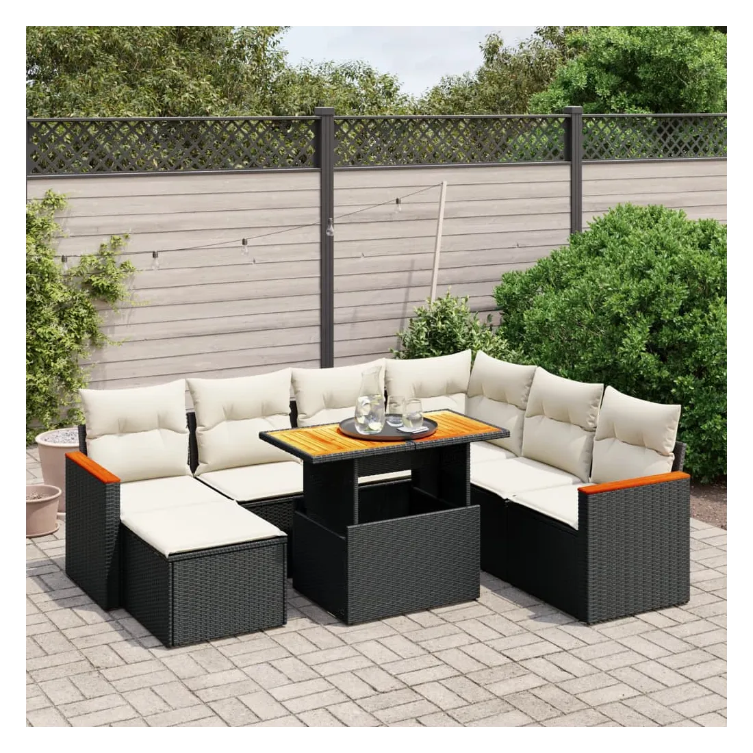 Salon de jardin 8 pcs avec coussins noir résine tressée