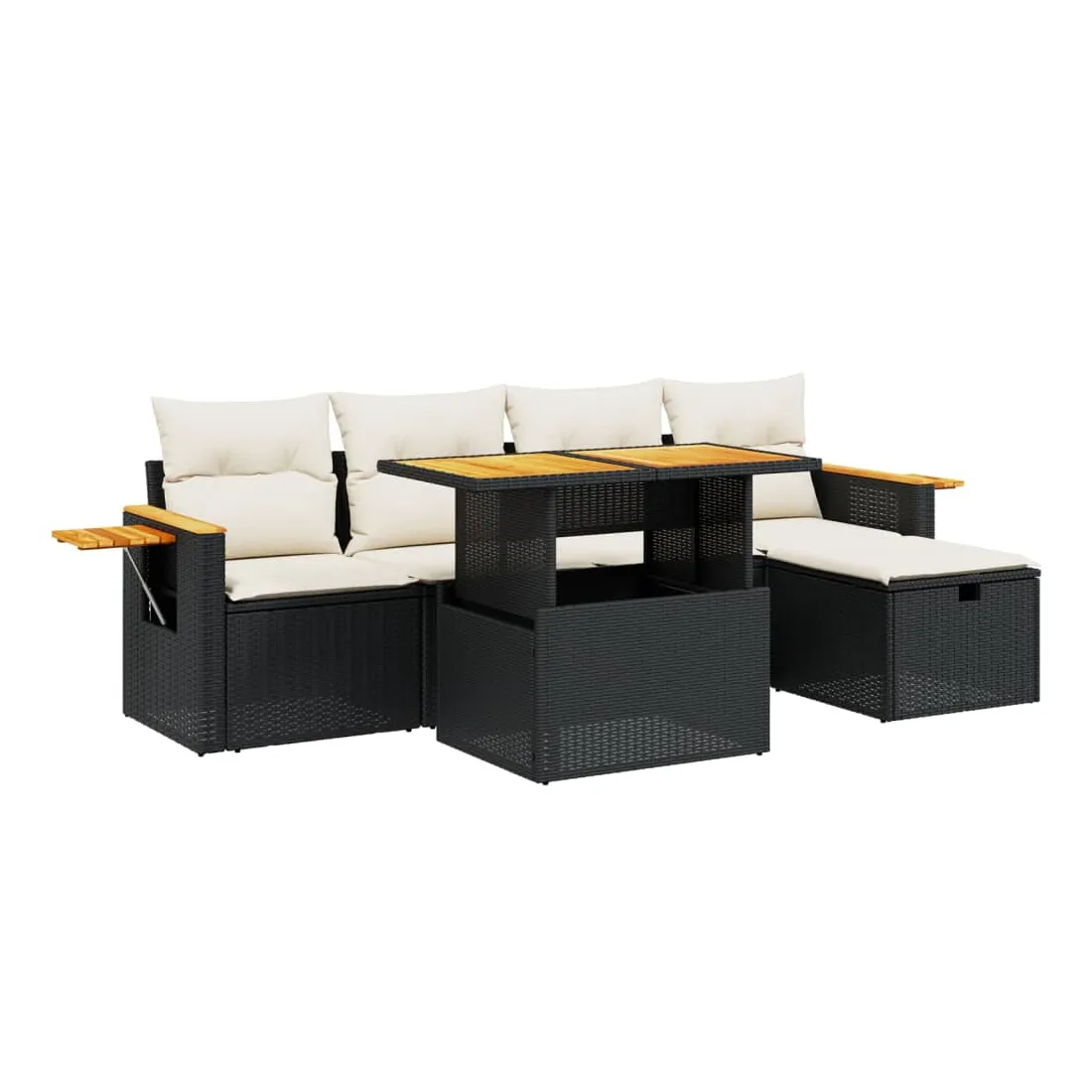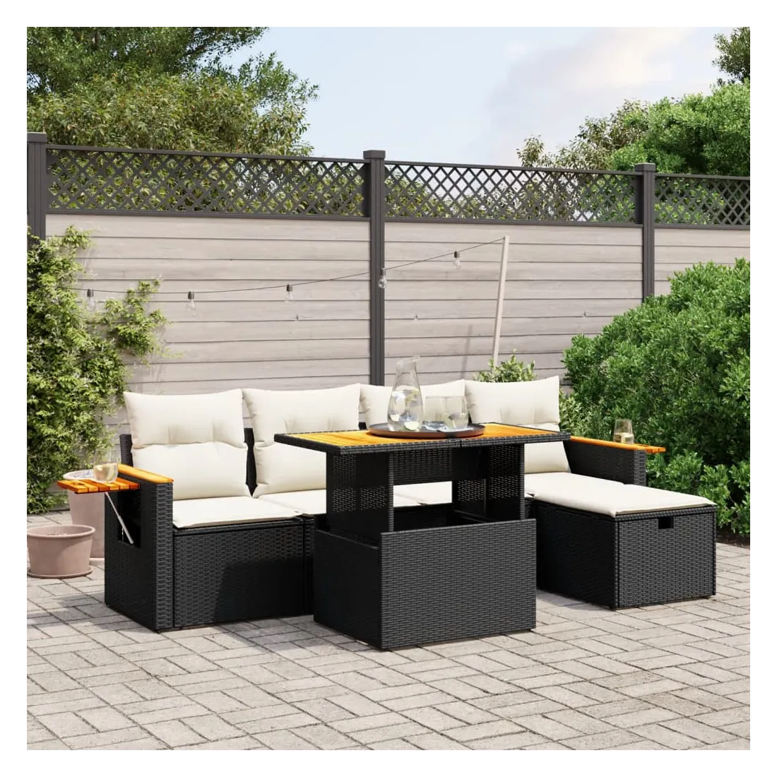 Cet ensemble de canapés de jardin est le complément parfait de votre arrière-cour, terrasse ou patio, offrant un espace confortable et accueillant pour discuter avec la famille et les amis ou simplement se détendre et profiter de l'extérieur. Matériau durable : la résine tressée, également connue sous le nom de poly rotin, est un matériau synthétique solide et nécessitant peu d'entretien qui ressemble au rotin naturel. Il est léger, facile à nettoyer et couramment utilisé pour les meubles d'extérieur en raison de sa durabilité et de ses propriétés de résistance aux intempéries.Dessus de table réglable : le dessus de table peut être soulevé pour rendre la table plus haute, ce qui transforme la table d'extérieur d'une table basse à une table de salle à manger. Elle est parfaite pour recevoir des invités ou prendre des repas à l'extérieur.Table d'appoint pratique : ce mobilier d'extérieur comprend une table d'appoint pliable avec un ressort à gaz sur les accoudoirs, offrant un endroit pratique pour garder vos essentiels à portée de main.Housse amovible et lavable : ces coussins de siège sont dotés de housses amovibles pour un lavage et un entretien faciles.Conception modulaire : cet ensemble de meubles d'extérieur a une conception modulaire, ce qui le rend complètement flexible et facile à déplacer, afin que vous puissiez créer un agencement de meubles d'extérieur personnalisé. Bon à savoir :Pour que vos meubles d'extérieur restent beaux, nous vous recommandons de les protéger avec une housse imperméable.