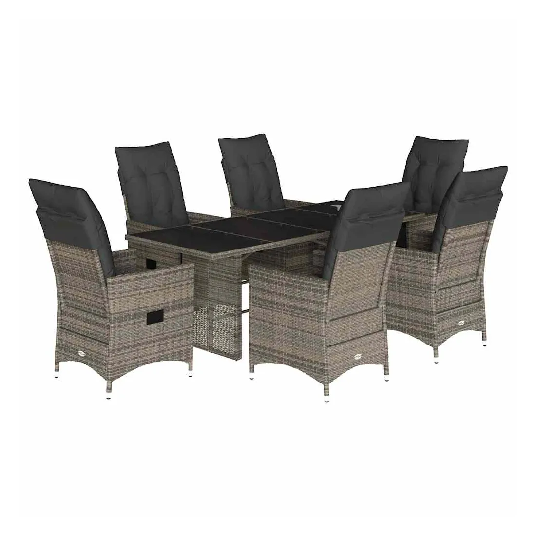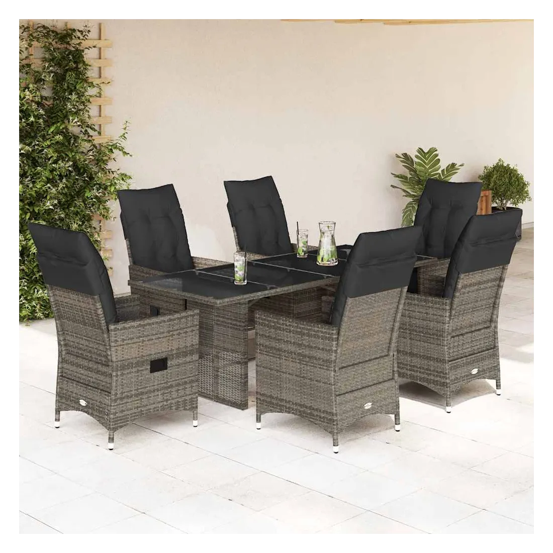 Cet ensemble de salle à manger de jardin est un excellent choix pour les repas en plein air ou pour vous détendre dans le jardin, dans l'arrière-cour ou sur la terrasse. Matériau durable : la résine tressée, également connue sous le nom de poly rotin, est un matériau synthétique solide et nécessitant peu d'entretien qui ressemble au rotin naturel. Elle est légère, facile à nettoyer et couramment utilisée pour les meubles d'extérieur en raison de sa durabilité et de ses propriétés de résistance aux intempéries.Dossier réglable : ce siège de jardin est doté d'une poignée. Vous pouvez régler le dossier dans n'importe quelle position en tirant sur la poignée et le remettre rapidement dans sa position initiale.Dessus en verre : le dessus de la table d'extérieur est fabriqué en verre trempé solide et durable, ce qui le rend facile à nettoyer avec un chiffon humide et ajoute une touche d'élégance à votre espace extérieur.Expérience d'assise confortable : cet ensemble de meubles d'extérieur, doté de coussins épais, offre une expérience d'assise confortable.Housse amovible et lavable : ces coussins de siège sont dotés de housses amovibles pour un lavage et un entretien faciles. Les coussins de dossier ont un rabat à l'arrière pour une fixation facile aux dossiers. Bon à savoir :Pour que vos meubles d'extérieur restent beaux, nous vous recommandons de les protéger avec une housse imperméable.