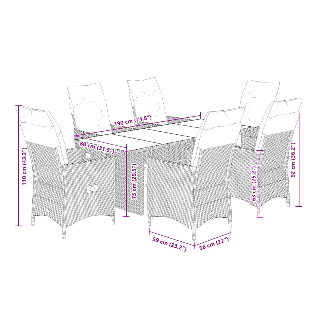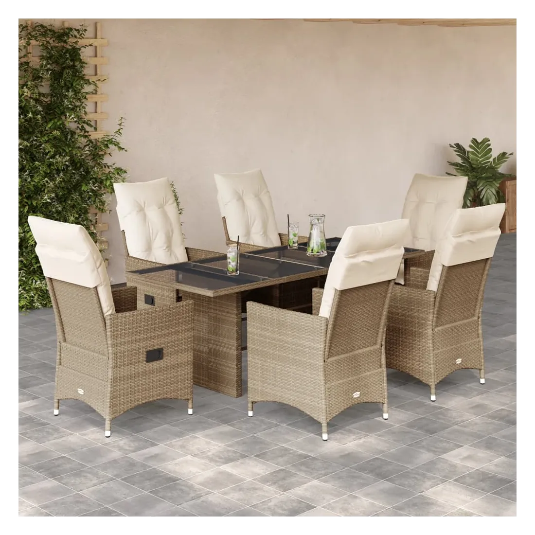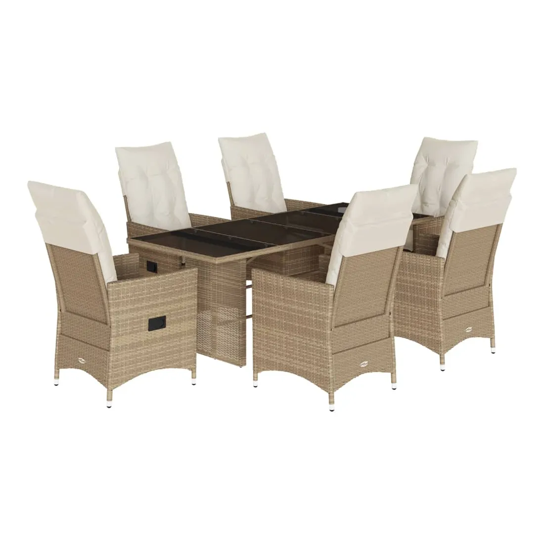 Ensemble à manger de jardin et coussins 7 pcs beige poly rotin