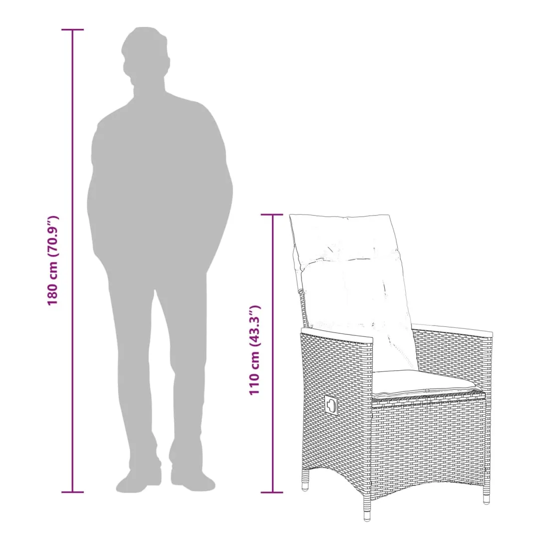 vidaXLCet ensemble de salle à manger de jardin est un excellent choix pour les repas en plein air ou pour vous détendre dans le jardin, dans l'arrière-cour ou sur la terrasse. Matériau durable : la résine tressée, également connue sous le nom de poly rotin, est un matériau synthétique solide et nécessitant peu d'entretien qui ressemble au rotin naturel. Il est léger, facile à nettoyer et couramment utilisé pour les meubles d'extérieur en raison de sa durabilité et de ses propriétés de résistance aux intempéries.Dossier réglable : ce siège de jardin est doté d'une poignée. Vous pouvez régler le dossier dans n'importe quelle position en tirant sur la poignée et le remettre rapidement dans sa position initiale.Dessus stable et facile à nettoyer : cette table de jardin a un dessus en bois d'acacia robuste, durable et facile à nettoyer avec un chiffon humide.Expérience d'assise confortable : cet ensemble de meubles d'extérieur, doté de coussins épais, offre une expérience d'assise confortable.Housse amovible et lavable : ces coussins de siège sont dotés de housses amovibles pour un lavage et un entretien faciles. Les coussins de dossier ont un rabat à l'arrière pour une fixation facile aux dossiers. Bon à savoir :Pour que vos meubles d'extérieur restent beaux, nous vous recommandons de les protéger avec une housse imperméable.