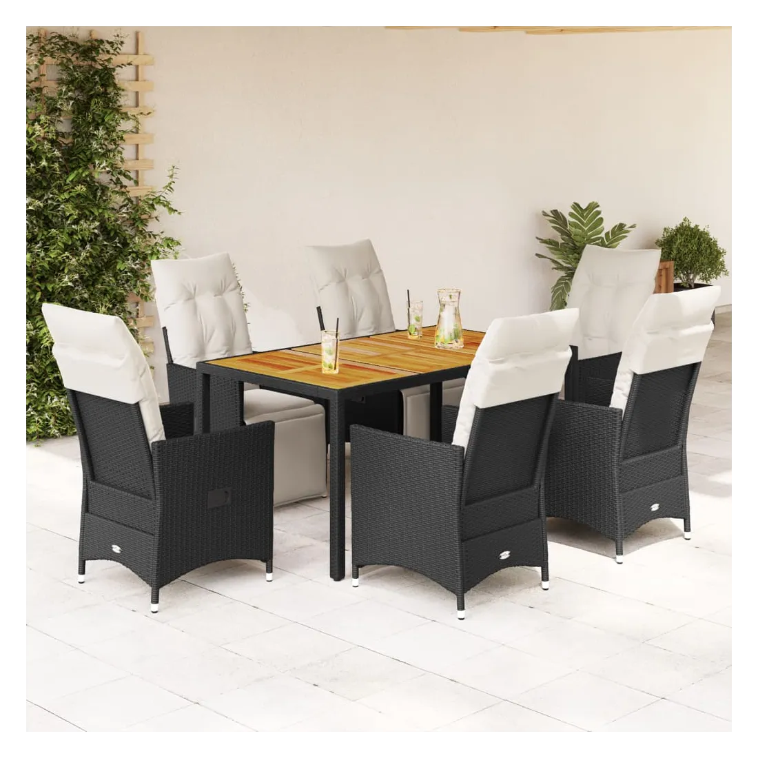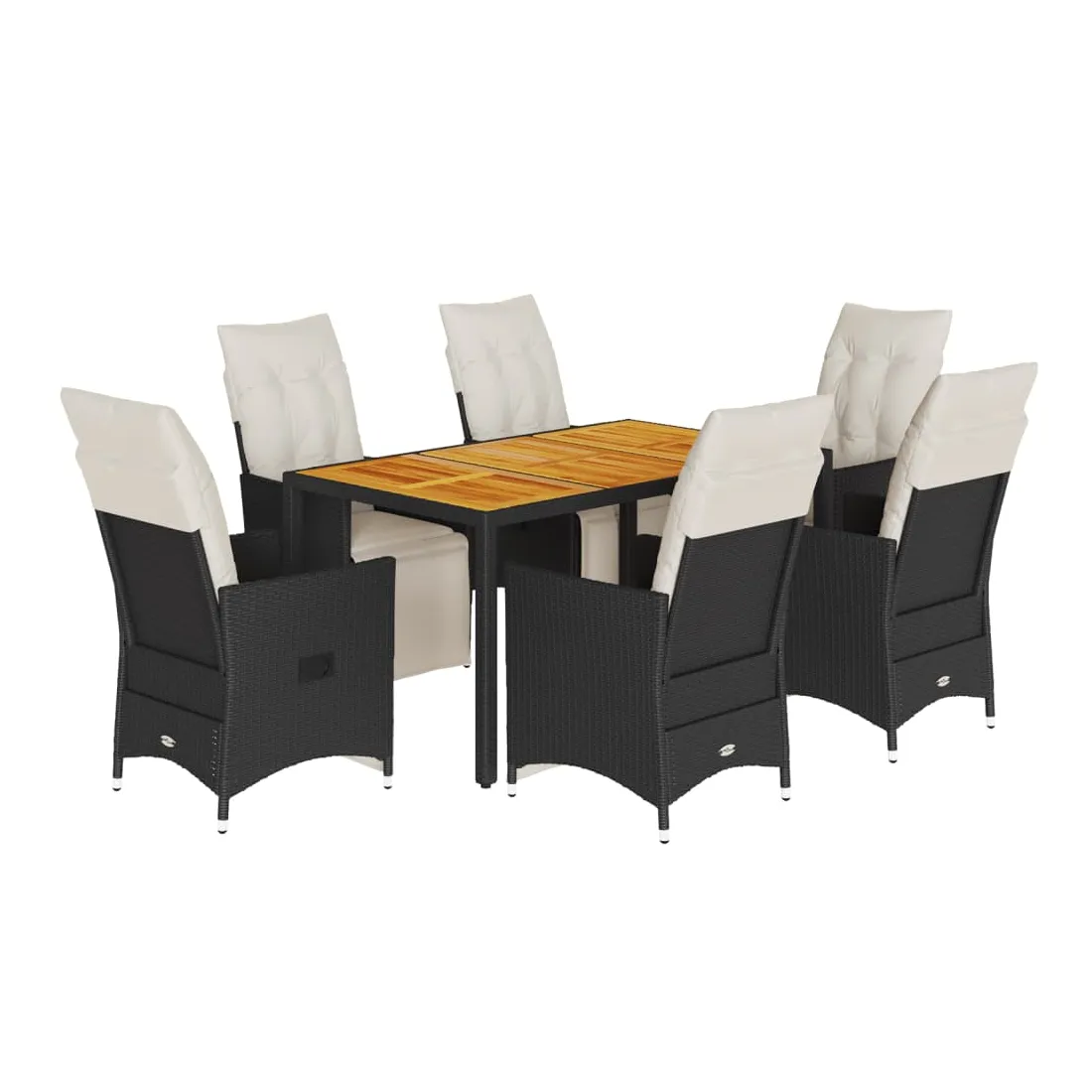 Ensemble à manger de jardin coussins 7 pcs noir résine tressée
