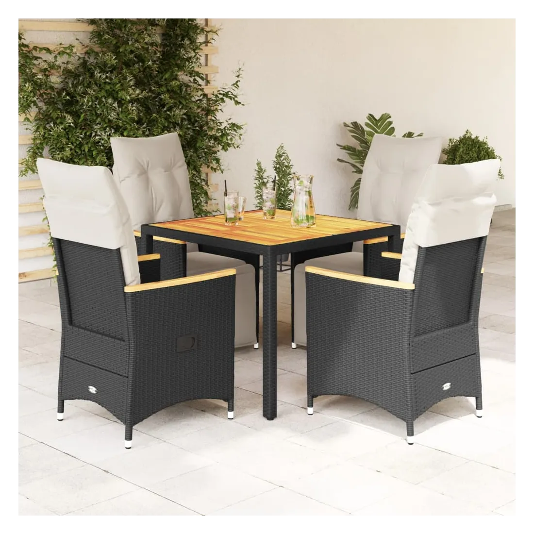 Savourez un café ou discutez avec votre famille et vos amis dans le jardin, l'arrière-cour ou sur le balcon avec cet ensemble de bistro confortable ! Matériau durable : la résine tressée, également connue sous le nom de poly rotin, est un matériau synthétique solide et nécessitant peu d'entretien qui ressemble au rotin naturel. Il est léger, facile à nettoyer et couramment utilisé pour les meubles d'extérieur en raison de sa durabilité et de ses propriétés de résistance aux intempéries.Dossier et repose-pied réglables : ce siège de jardin est doté d'une poignée. Vous pouvez régler le dossier et le repose-pied dans n'importe quelle position en tirant sur la poignée, et le remettre rapidement dans sa position initiale.Expérience d'assise confortable : ce mobilier d'extérieur, doté de coussins épais, offre une expérience d'assise confortable.Housse amovible et lavable : ces coussins de siège sont dotés de housses amovibles pour un lavage et un entretien faciles. Les coussins de dossier ont un rabat à l'arrière pour une fixation facile aux dossiers.Dessus stable et facile à nettoyer : cette table de jardin a un dessus en bois d'acacia robuste, durable et facile à nettoyer avec un chiffon humide. Bon à savoir :Pour que vos meubles d'extérieur restent beaux, nous vous recommandons de les protéger avec une housse imperméable.
