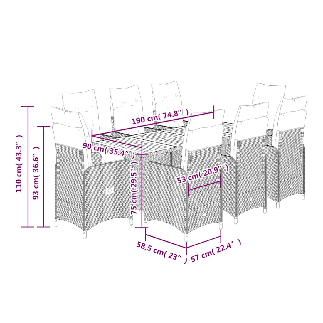 - Dimensions : 190 x 80 x 75 cm (L x l x H)