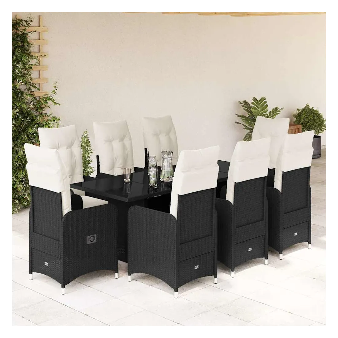 Savourez un café ou discutez avec votre famille et vos amis dans le jardin, l'arrière-cour ou sur le balcon avec cet ensemble de bistro confortable ! Matériau durable : la résine tressée, également connue sous le nom de poly rotin, est un matériau synthétique solide et nécessitant peu d'entretien qui ressemble au rotin naturel. Elle est légère, facile à nettoyer et couramment utilisée pour les meubles d'extérieur en raison de sa durabilité et de ses propriétés de résistance aux intempéries.Dossier réglable : ce siège de jardin est doté d'une poignée. Vous pouvez régler le dossier dans n'importe quelle position en tirant sur la poignée et le remettre rapidement dans sa position initiale.Expérience d'assise confortable : ce mobilier d'extérieur, doté de coussins épais, offre une expérience d'assise confortable.Housse amovible et lavable : ces coussins de siège sont dotés de housses amovibles pour un lavage et un entretien faciles. Les coussins de dossier ont un rabat à l'arrière pour une fixation facile aux dossiers.Dessus en verre : le dessus de la table d'extérieur est fabriqué en verre trempé solide et durable, ce qui le rend facile à nettoyer avec un chiffon humide et ajoute une touche d'élégance à votre espace extérieur. Bon à savoir :Pour que vos meubles d'extérieur restent beaux, nous vous recommandons de les protéger avec une housse imperméable.