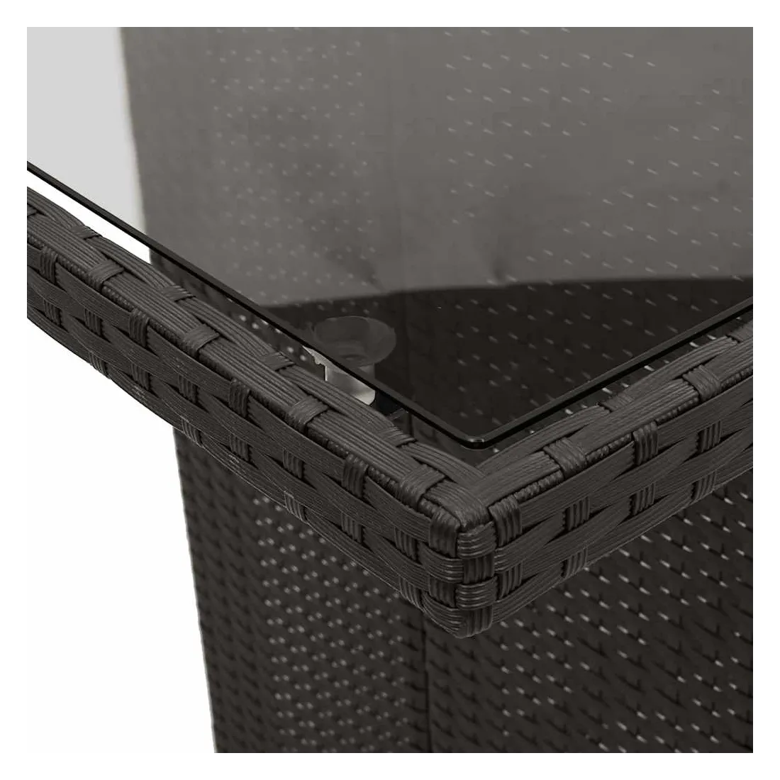 - Matériau : résine tressée, acier enduit de poudre, verre trempé