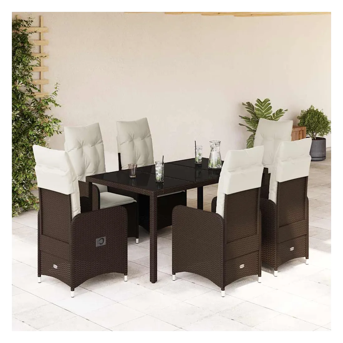 Savourez un café ou discutez avec votre famille et vos amis dans le jardin, l'arrière-cour ou sur le balcon avec cet ensemble de bistro confortable ! Matériau durable : la résine tressée, également connue sous le nom de poly rotin, est un matériau synthétique solide et nécessitant peu d'entretien qui ressemble au rotin naturel. Elle est légère, facile à nettoyer et couramment utilisée pour les meubles d'extérieur en raison de sa durabilité et de ses propriétés de résistance aux intempéries.Dossier réglable : ce siège de jardin est doté d'une poignée. Vous pouvez régler le dossier dans n'importe quelle position en tirant sur la poignée et le remettre rapidement dans sa position initiale.Expérience d'assise confortable : ce mobilier d'extérieur, doté de coussins épais, offre une expérience d'assise confortable.Housse amovible et lavable : ces coussins de siège sont dotés de housses amovibles pour un lavage et un entretien faciles. Les coussins de dossier ont un rabat à l'arrière pour une fixation facile aux dossiers.Dessus en verre : le dessus de la table d'extérieur est fabriqué en verre trempé solide et durable, ce qui le rend facile à nettoyer avec un chiffon humide et ajoute une touche d'élégance à votre espace extérieur. Bon à savoir :Pour que vos meubles d'extérieur restent beaux, nous vous recommandons de les protéger avec une housse imperméable.