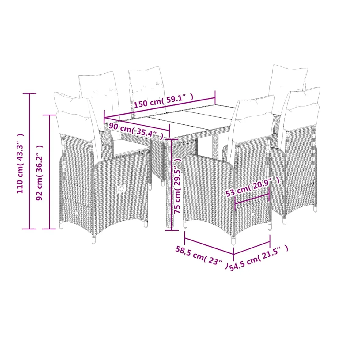 - Dimensions de l'assise : 54,5 x 58,5 x 92 cm (l x P x H)