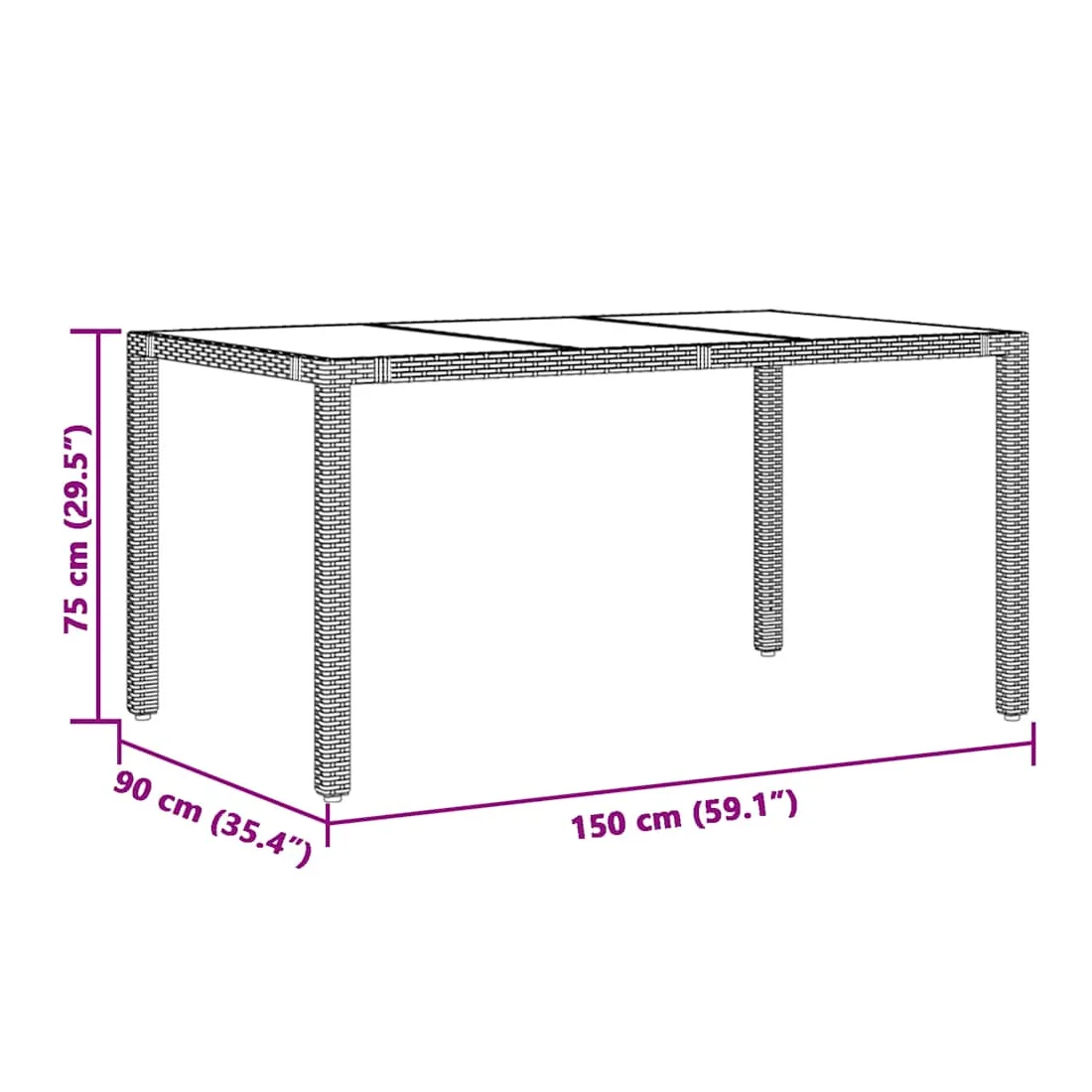 - Dimensions : 150 x 90 x 75 cm (L x l x H)