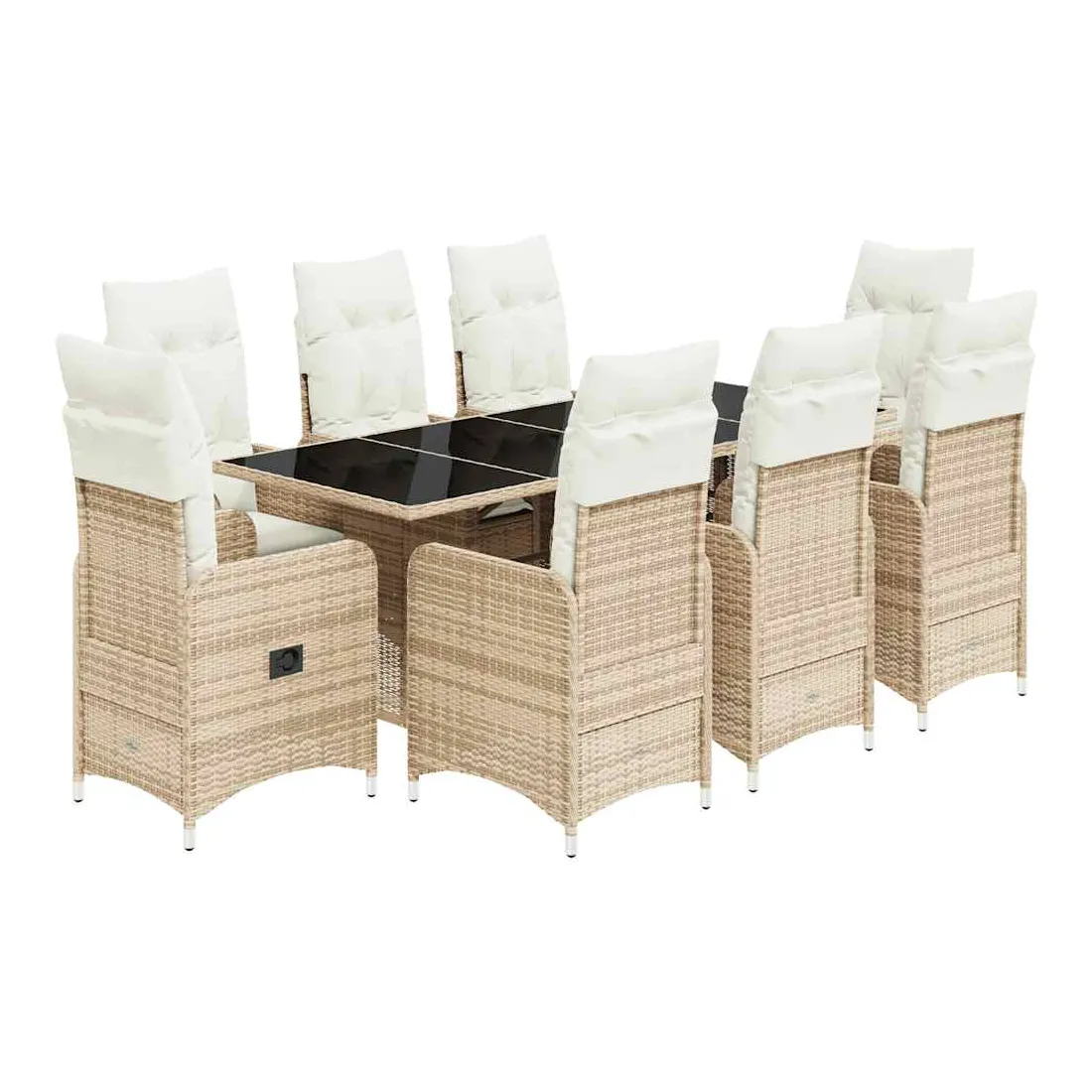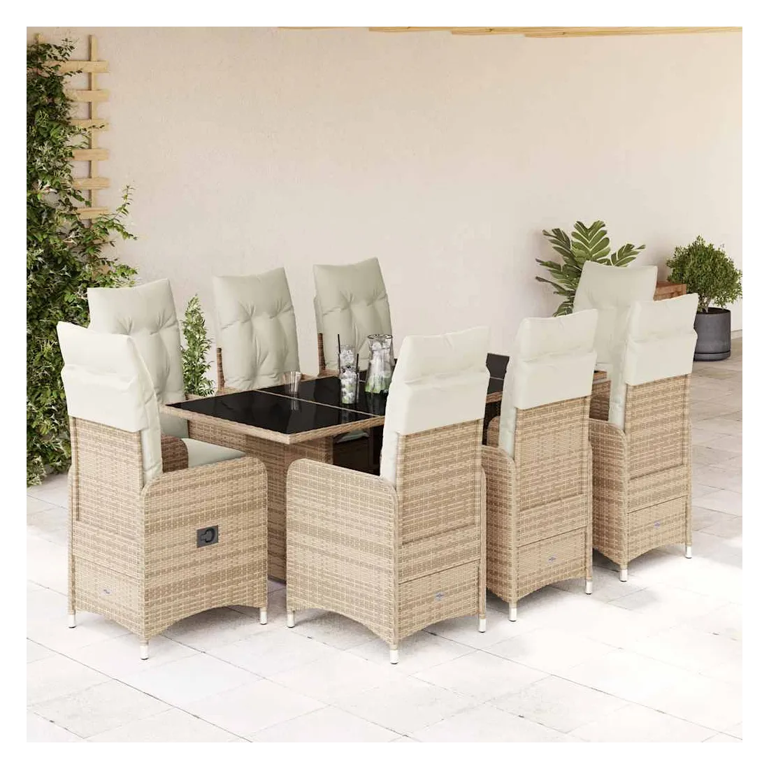 Savourez un café ou discutez avec votre famille et vos amis dans le jardin, l'arrière-cour ou sur le balcon avec cet ensemble de bistro confortable ! Matériau durable : la résine tressée, également connue sous le nom de poly rotin, est un matériau synthétique solide et nécessitant peu d'entretien qui ressemble au rotin naturel. Elle est légère, facile à nettoyer et couramment utilisée pour les meubles d'extérieur en raison de sa durabilité et de ses propriétés de résistance aux intempéries.Dossier réglable : ce siège de jardin est doté d'une poignée. Vous pouvez régler le dossier dans n'importe quelle position en tirant sur la poignée et le remettre rapidement dans sa position initiale.Expérience d'assise confortable : ce mobilier d'extérieur, doté de coussins épais, offre une expérience d'assise confortable.Housse amovible et lavable : ces coussins de siège sont dotés de housses amovibles pour un lavage et un entretien faciles. Les coussins de dossier ont un rabat à l'arrière pour une fixation facile aux dossiers.Dessus en verre : le dessus de la table d'extérieur est fabriqué en verre trempé solide et durable, ce qui le rend facile à nettoyer avec un chiffon humide et ajoute une touche d'élégance à votre espace extérieur. Bon à savoir :Pour que vos meubles d'extérieur restent beaux, nous vous recommandons de les protéger avec une housse imperméable.
