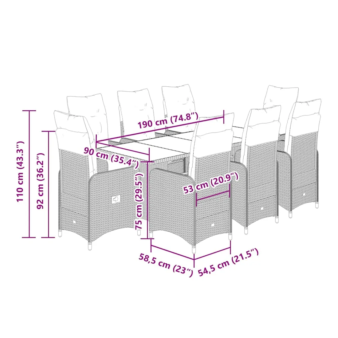 - Dimensions : 190 x 80 x 75 cm (L x l x H)