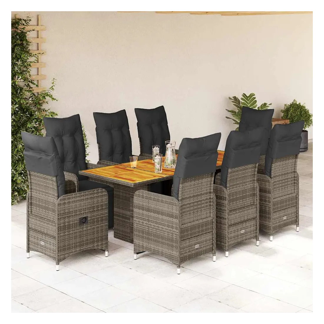 Savourez un café ou discutez avec votre famille et vos amis dans le jardin, l'arrière-cour ou sur le balcon avec cet ensemble de bistro confortable ! Matériau durable : la résine tressée, également connue sous le nom de poly rotin, est un matériau synthétique solide et nécessitant peu d'entretien qui ressemble au rotin naturel. Elle est légère, facile à nettoyer et couramment utilisée pour les meubles d'extérieur en raison de sa durabilité et de ses propriétés de résistance aux intempéries.Dossier et repose-pied réglables : ce siège de jardin est doté d'une poignée. Vous pouvez régler le dossier et le repose-pied dans n'importe quelle position en tirant sur la poignée, et le remettre rapidement dans sa position initiale.Expérience d'assise confortable : ce mobilier d'extérieur, doté de coussins épais, offre une expérience d'assise confortable.Housse amovible et lavable : ces coussins de siège sont dotés de housses amovibles pour un lavage et un entretien faciles. Les coussins de dossier ont un rabat à l'arrière pour une fixation facile aux dossiers.Dessus stable et facile à nettoyer : cette table de jardin a un dessus en bois d'acacia robuste, durable et facile à nettoyer avec un chiffon humide. Bon à savoir :Pour que vos meubles d'extérieur restent beaux, nous vous recommandons de les protéger avec une housse imperméable.