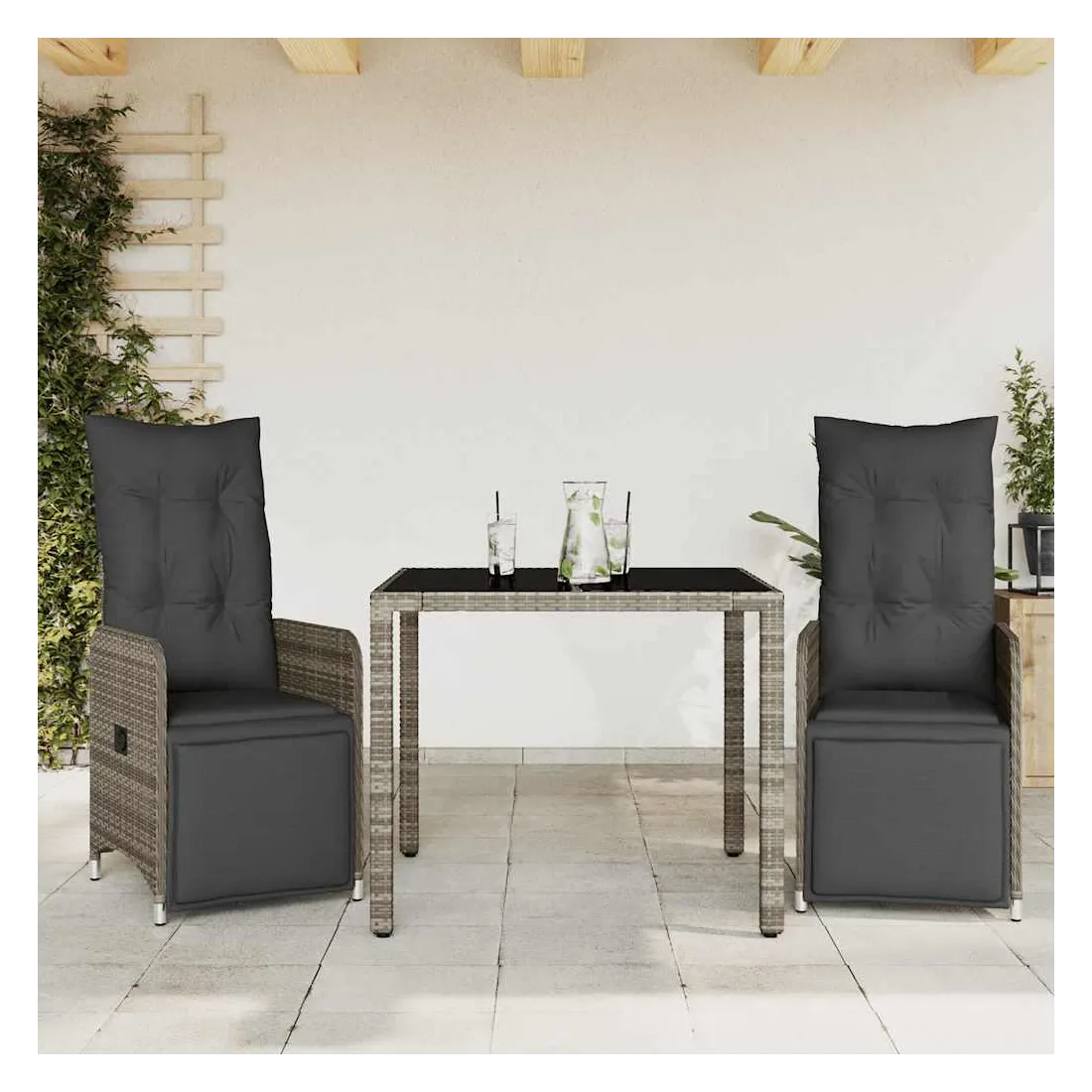 Savourez un café ou discutez avec votre famille et vos amis dans le jardin, l'arrière-cour ou sur le balcon avec cet ensemble de bistro confortable ! Matériau durable : la résine tressée, également connue sous le nom de poly rotin, est un matériau synthétique solide et nécessitant peu d'entretien qui ressemble au rotin naturel. Elle est légère, facile à nettoyer et couramment utilisée pour les meubles d'extérieur en raison de sa durabilité et de ses propriétés de résistance aux intempéries.Dossier et repose-pied réglables : ce siège de jardin est doté d'une poignée. Vous pouvez régler le dossier et le repose-pied dans n'importe quelle position en tirant sur la poignée, et le remettre rapidement dans sa position initiale.Expérience d'assise confortable : ce mobilier d'extérieur, doté de coussins épais, offre une expérience d'assise confortable.Housse amovible et lavable : ces coussins de siège sont dotés de housses amovibles pour un lavage et un entretien faciles. Les coussins de dossier ont un rabat à l'arrière pour une fixation facile aux dossiers.Dessus en verre : le dessus de la table d'extérieur est fabriqué en verre trempé solide et durable, ce qui le rend facile à nettoyer avec un chiffon humide et ajoute une touche d'élégance à votre espace extérieur. Bon à savoir :Pour que vos meubles d'extérieur restent beaux, nous vous recommandons de les protéger avec une housse imperméable.
