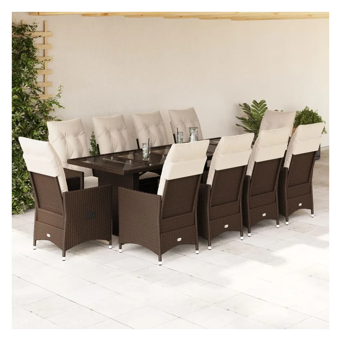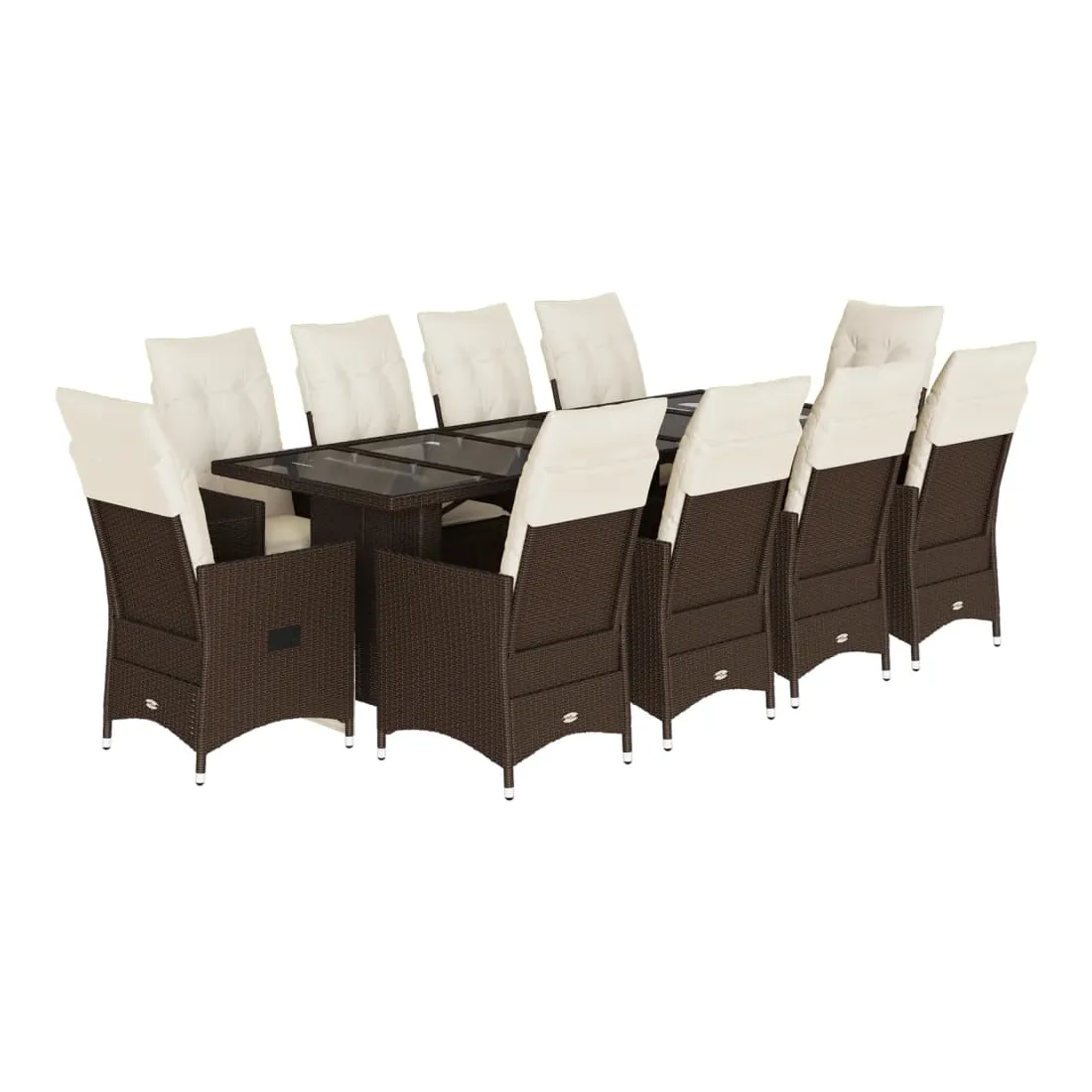 Ensemble de bistro de jardin 11 pcs coussins marron poly rotin