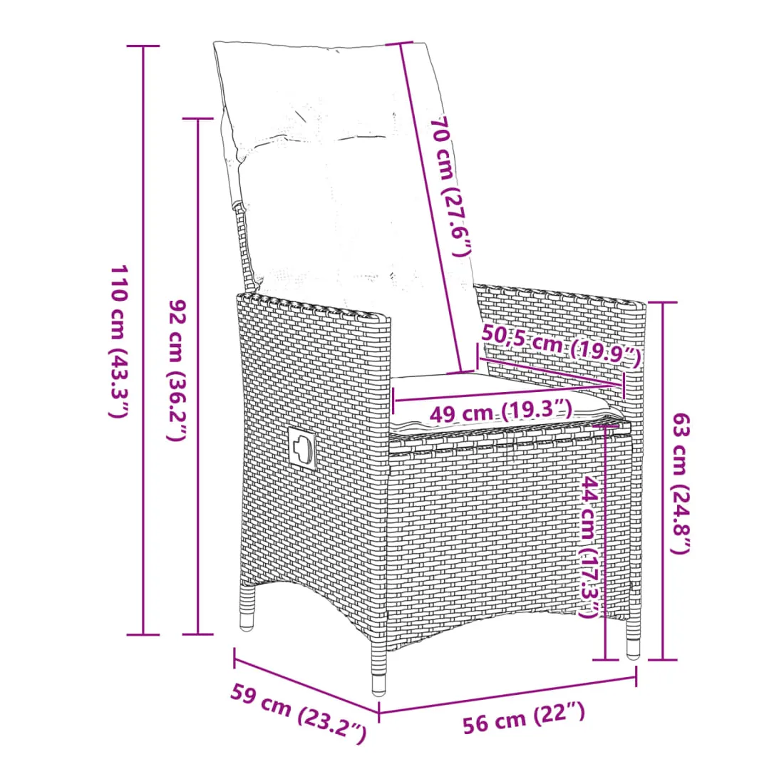 vidaXLSavourez un café ou discutez avec votre famille et vos amis dans le jardin, la cour arrière ou sur le balcon grâce à cet ensemble bistrot confortable ! Matériau durable : le rotin PE, également appelé polyrotin, est un matériau synthétique solide et facile d'entretien qui ressemble au rotin naturel. Il est léger, facile à nettoyer et couramment utilisé pour les meubles d'extérieur en raison de sa durabilité et de ses propriétés résistantes aux intempéries. Dossier réglable : ce siège de jardin est équipé d'une poignée. Vous pouvez régler le dossier dans n'importe quelle position en tirant sur la poignée, puis le remettre rapidement dans sa position d'origine. Assise confortable : ce mobilier d'extérieur, doté de coussins épais et rembourrés, offre une assise confortable. Housse amovible et lavable : les coussins d'assise sont dotés de housses amovibles pour faciliter le lavage et l'entretien. Les coussins de dossier sont dotés d'un rabat à l'arrière pour faciliter leur fixation aux dossiers. Plateau en verre : le plateau de la table d'extérieur est en verre trempé solide et durable, ce qui le rend facile à nettoyer avec un chiffon humide et ajoute une touche d'élégance à votre espace extérieur. Bon à savoir :Pour que votre mobilier d'extérieur reste beau, nous vous recommandons de le protéger avec une housse imperméable.