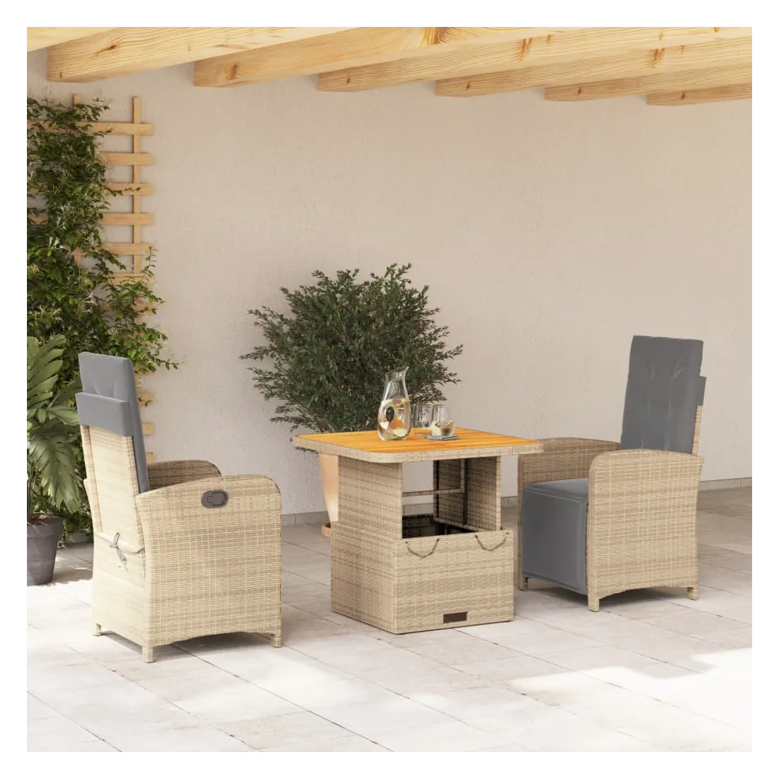 Cet ensemble de salle à manger de jardin est un excellent choix pour les repas en plein air ou pour vous détendre dans le jardin, dans l'arrière-cour ou sur la terrasse. Matériau durable : la résine tressée, également connue sous le nom de poly rotin, est un matériau synthétique solide et nécessitant peu d'entretien qui ressemble au rotin naturel. Il est léger, facile à nettoyer et couramment utilisé pour les meubles d'extérieur en raison de sa durabilité et de ses propriétés de résistance aux intempéries.Dossier réglable : ce siège de jardin est doté d'une poignée. Vous pouvez régler le dossier dans n'importe quelle position en tirant sur la poignée et le remettre rapidement dans sa position initiale.Dessus de table réglable : le dessus de table peut être soulevé pour rendre la table plus haute, ce qui transforme la table d'extérieur d'une table basse à une table de salle à manger. Elle est parfaite pour recevoir des invités ou prendre des repas à l'extérieur.Housse amovible et lavable : ces coussins de siège sont dotés de housses amovibles pour un lavage et un entretien faciles. Les coussins de dossier ont un rabat à l'arrière pour une fixation facile aux dossiers.Expérience d'assise confortable : ce mobilier d'extérieur, doté de coussins épais, offre une expérience d'assise confortable. Bon à savoir :Pour que vos meubles d'extérieur restent beaux, nous vous recommandons de les protéger avec une housse imperméable.