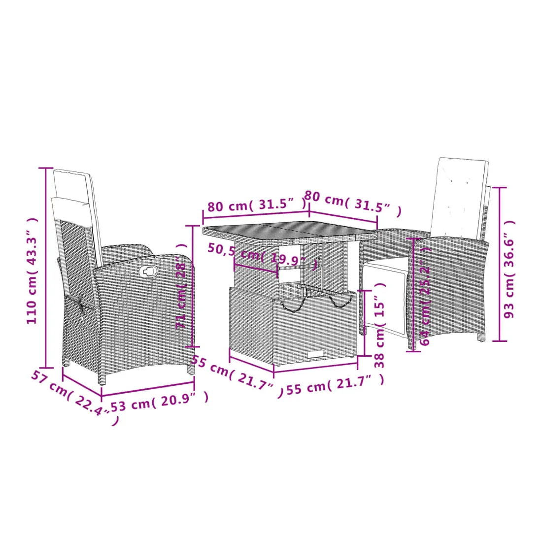- Dimensions de la table : 80 x 80 x 40/71 cm (L x l x H)