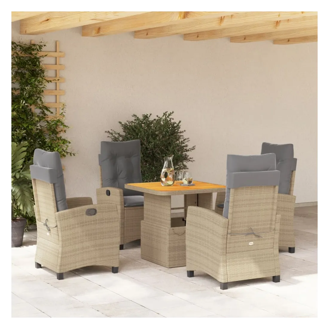 Ensemble à manger de jardin avec coussins 5pcs Beige poly rotin