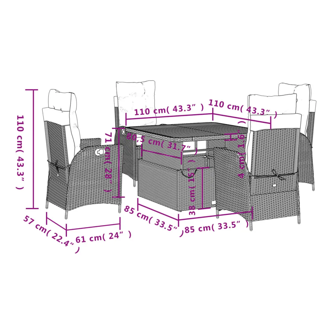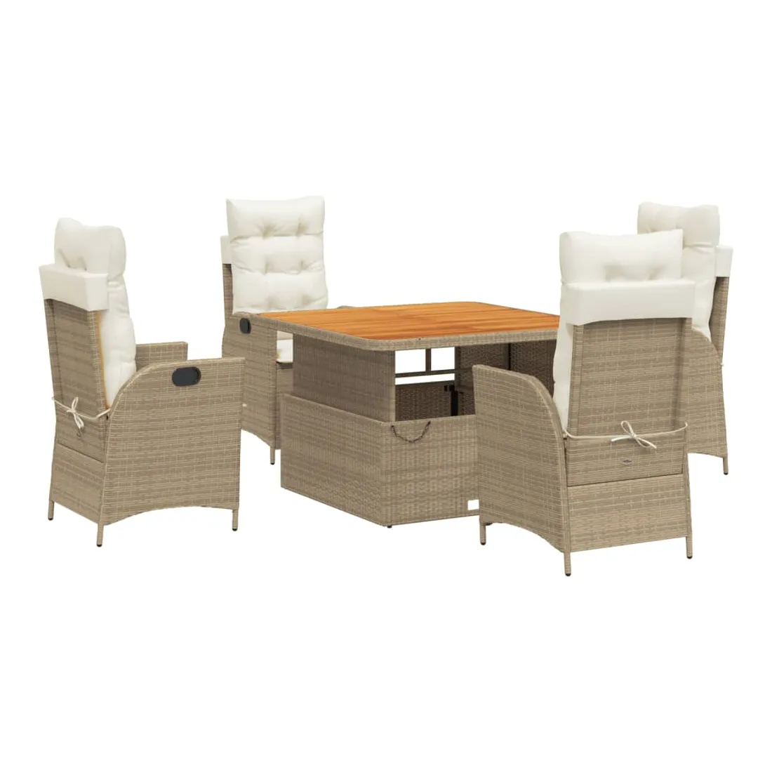 Ensemble à manger de jardin avec coussins 5pcs Beige poly rotin