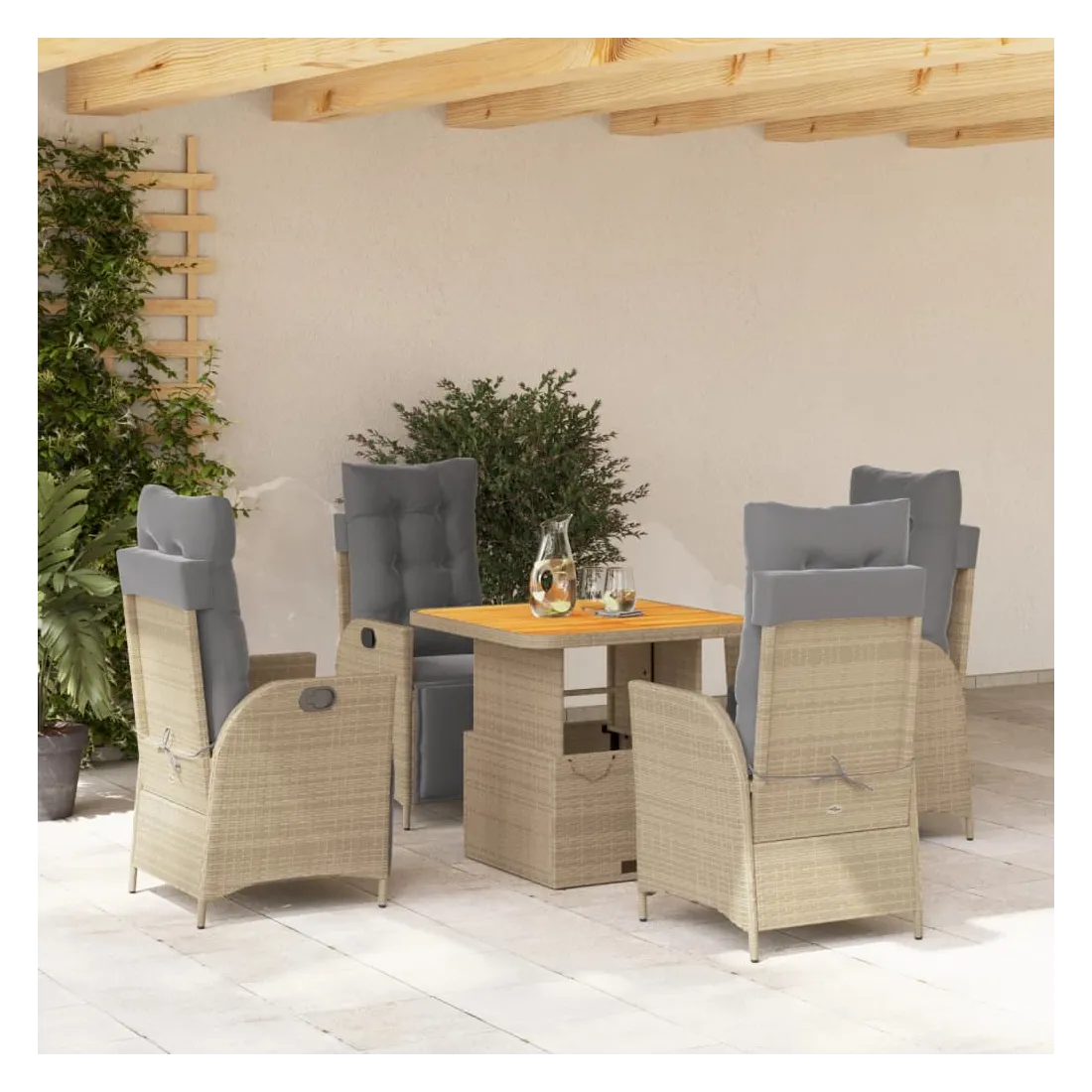 Ensemble à manger de jardin avec coussins 5pcs Beige poly rotin